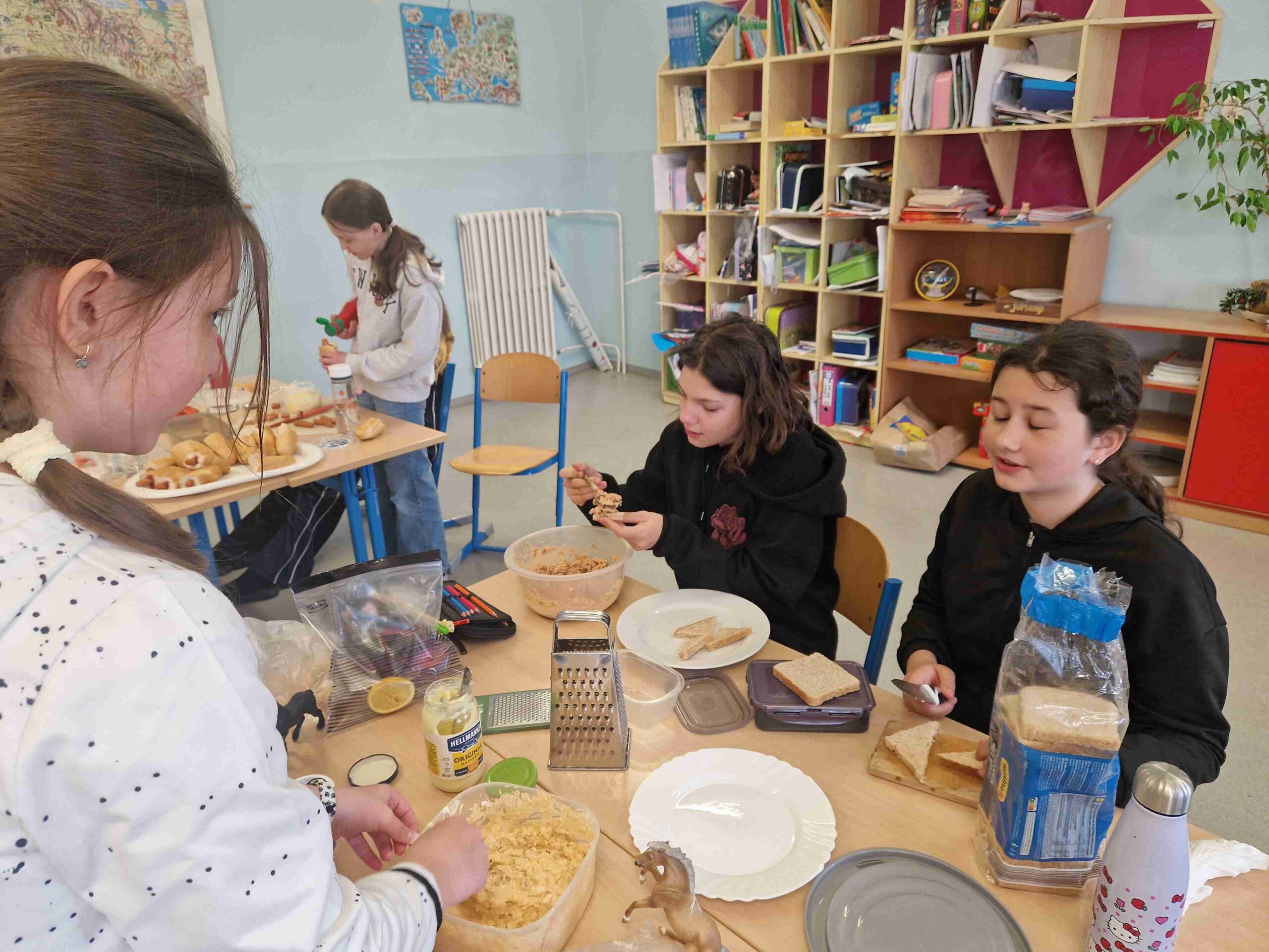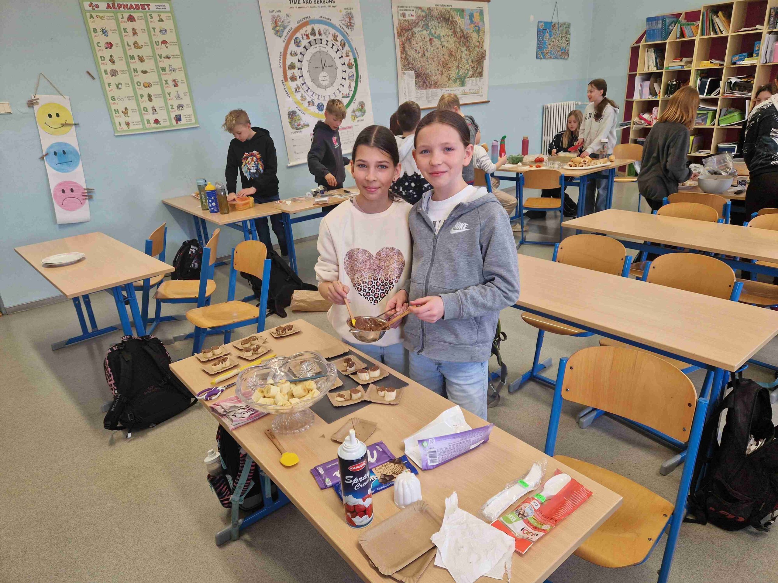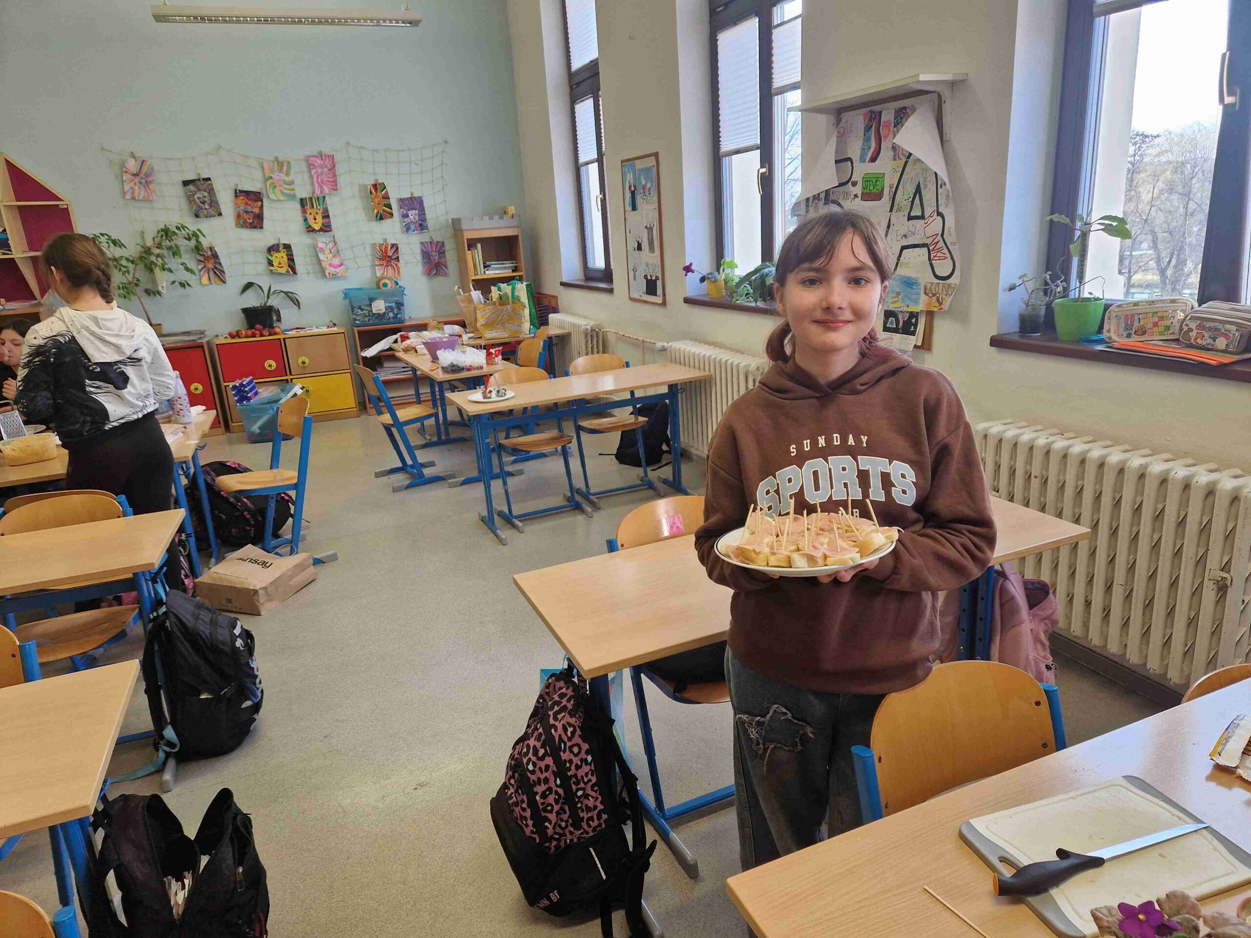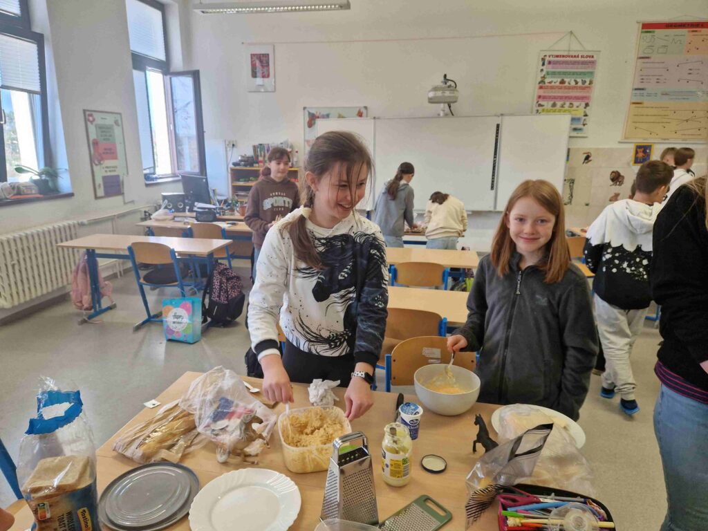 Třída 5.A si vyzkoušela, že vaření není jen o receptech, ale hlavně o spolupráci a chuti tvořit. Ve třídě to vonělo čerstvým pečivem, pomazánkami i sladkými dobrotami. Děti pracovaly ve skupinkách, rozdělily si úkoly a pustily se do přípravy – někdo krájel, jiný míchal, další chystal servírování.