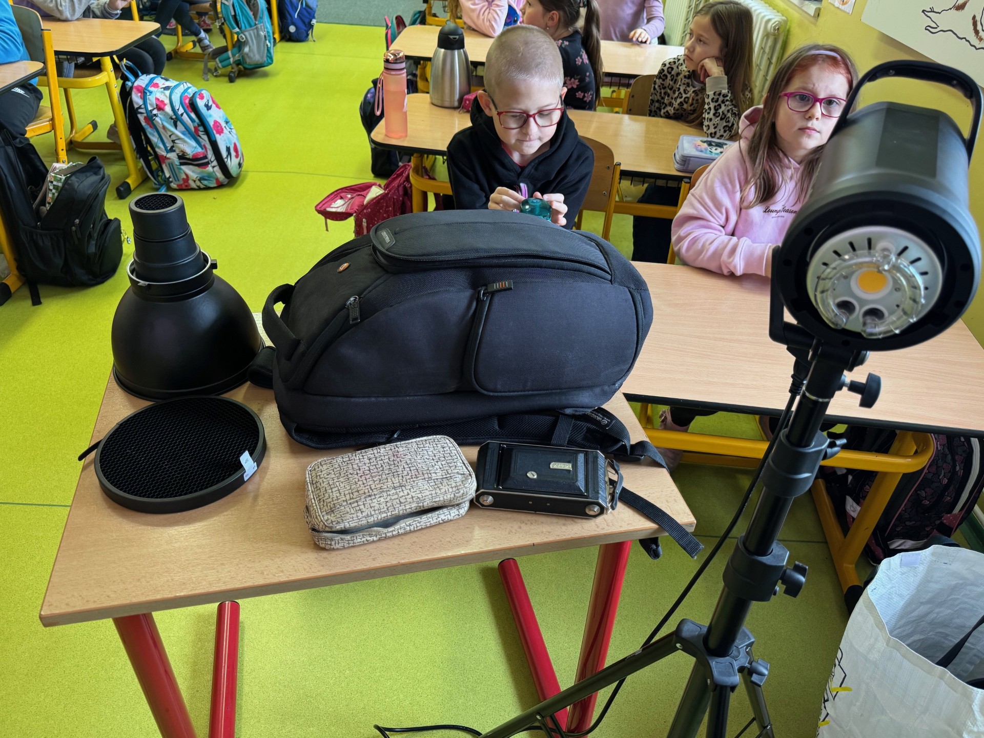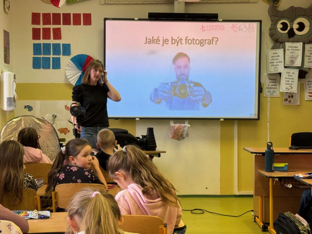 Tematiku „Lidé kolem nás“ zahájila třída 3.A poutavou besedou s paní Řezáčovou, která se živí jako rodinná fotografka. O tom, že je paní fotografka profesionálka, děti přesvědčila svým rozsáhlým technickým vybavením, jehož malou část přinesla na ukázku. Školáky zaujal starý fotoaparát z poloviny minulého století, stejně jako světla a odrazky, které jsou nezbytné pro vytvoření kvalitní fotografie.