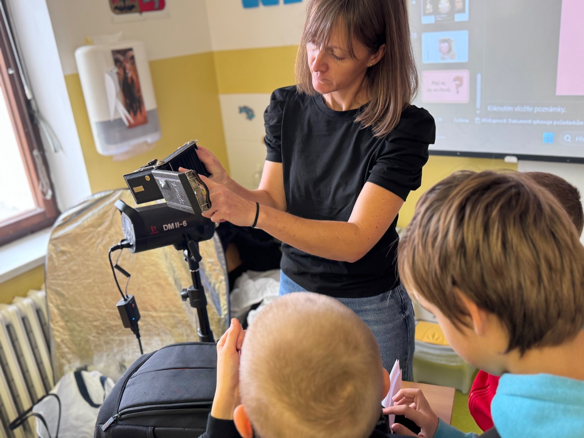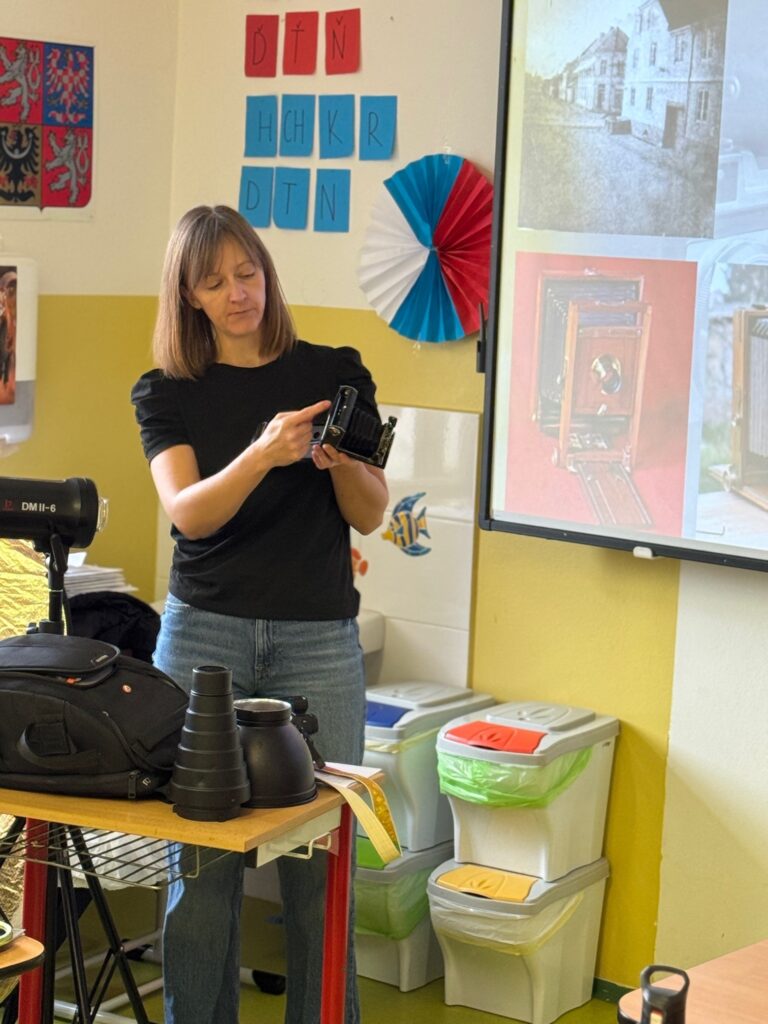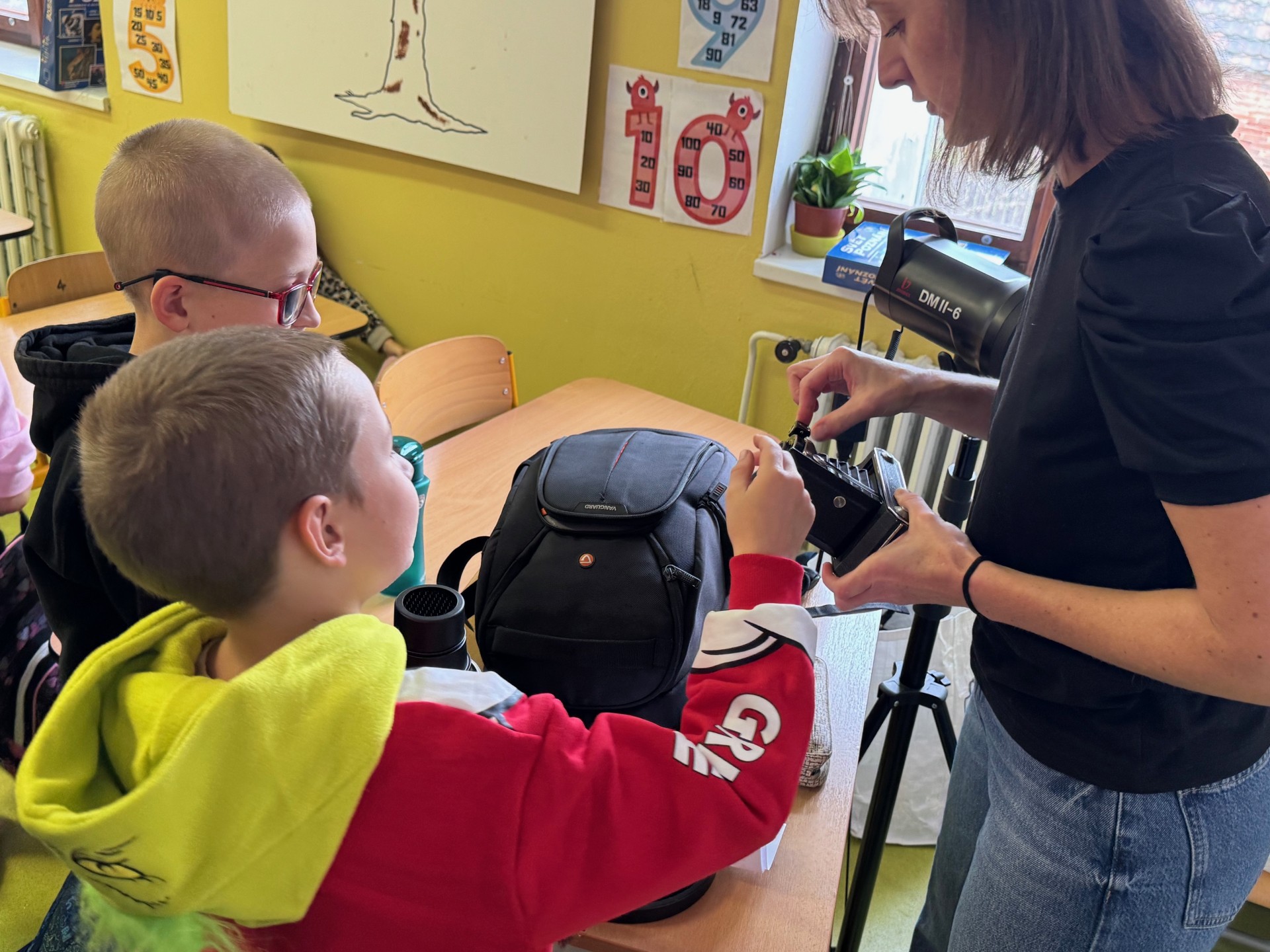 Paní Řezáčová zajímavě vyprávěla o raných počátcích fotografie i o nejmodernějších trendech ve fotografování. Dětem prozradila základní pravidla, na která je třeba si dávat pozor, ať už fotíte mobilním telefonem, levnějším fotoaparátem nebo špičkovou technikou.