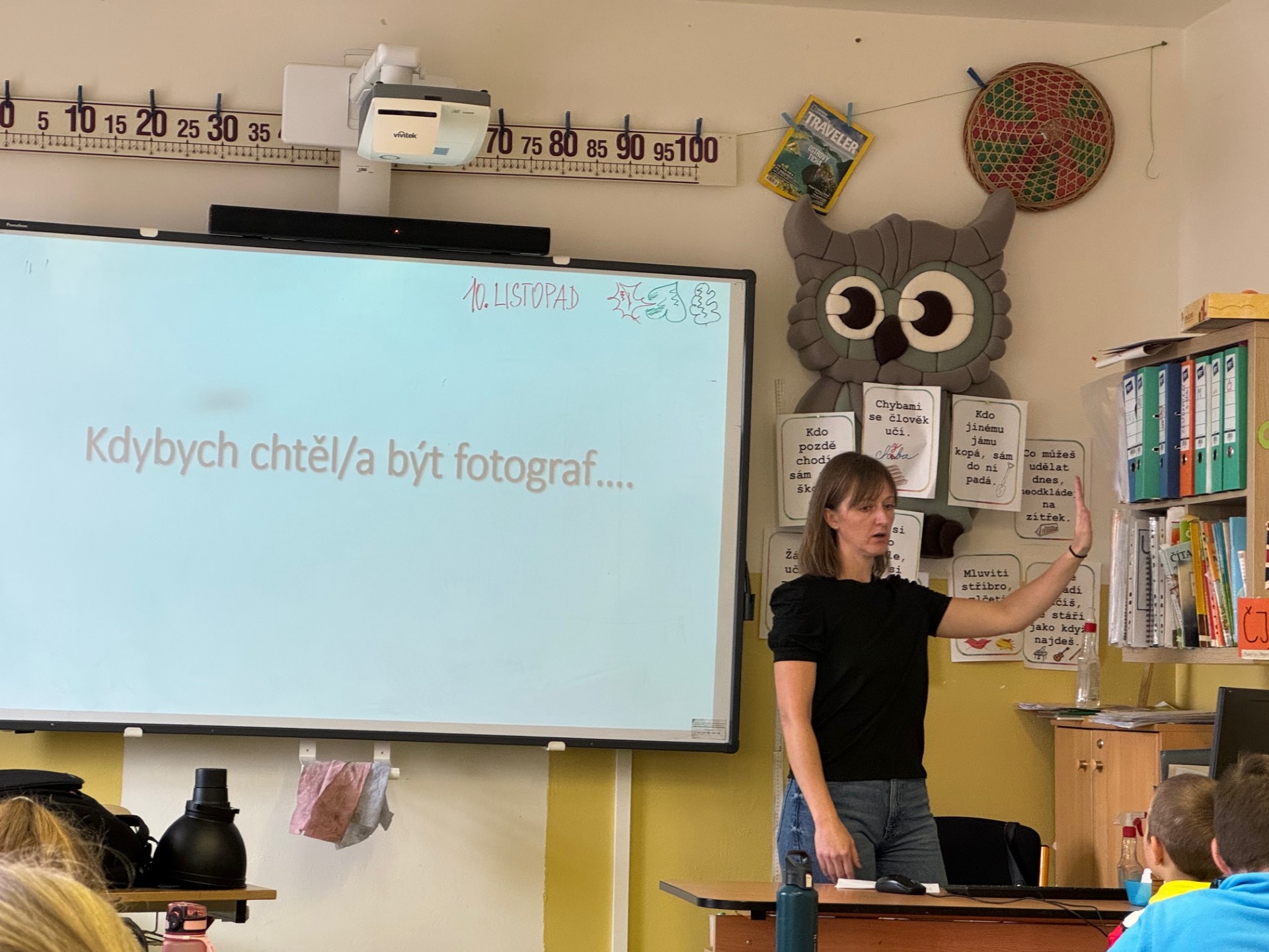 Beseda s fotografkou navazuje na seriál setkání s rodiči, kteří dětem přicházejí pohovořit o své práci. Současní třeťáci tak již měli možnost slyšet zdravotníky, policisty, projektanta i kartografy. Tato setkání jsou vždy milá, poučná a zároveň zábavná