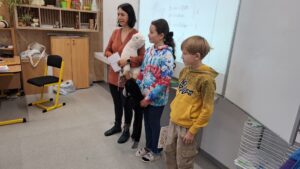 Jen pár dní po celostátních volbách si naši třeťáci zkusili, jaké to je volit — a to přímo na obecním úřadě v Nučicích! Pozvání od pana starosty přijali s nadšením a čekalo je nejen poznávání úřadu, ale i vlastní hlasování. Pan starosta je nejprve přivítal ve své kanceláři, kde jim ukázal trezor s historickými mapami důlní těžby a také úřední insignie, které se používají při oddávání. Děti se nebály ptát a dozvěděly se spoustu zajímavostí o práci starosty. V sekretariátu si prohlédly místní rozhlas a seznámily se s dalšími pracovníky...