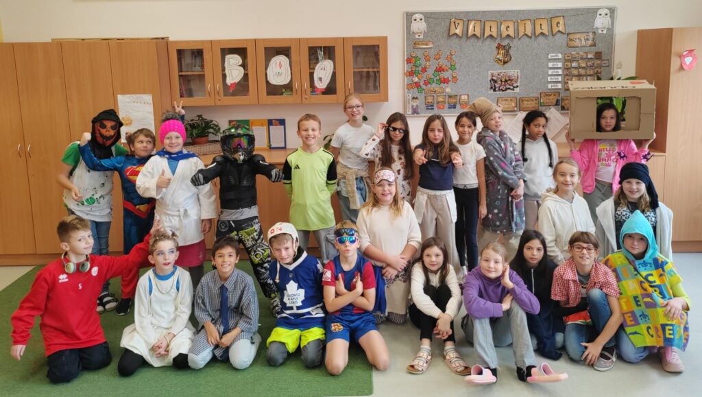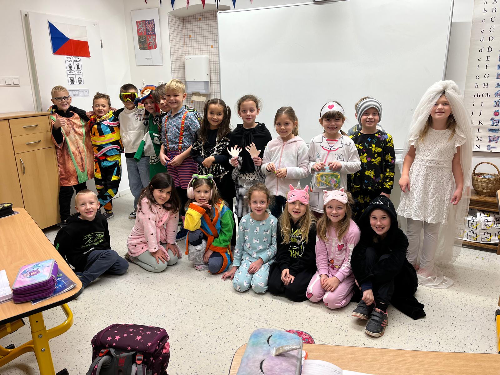 A nezůstalo jen u dětí! Do akce se s nadšením zapojily i paní učitelky a asistentky, které předvedly, že kreativita nemá limity. Chodby školy se tak změnily v jedno velké veselé defilé originality.