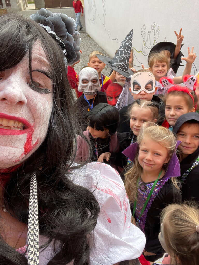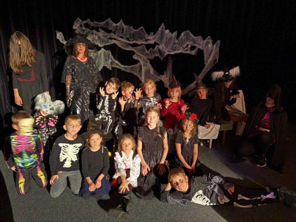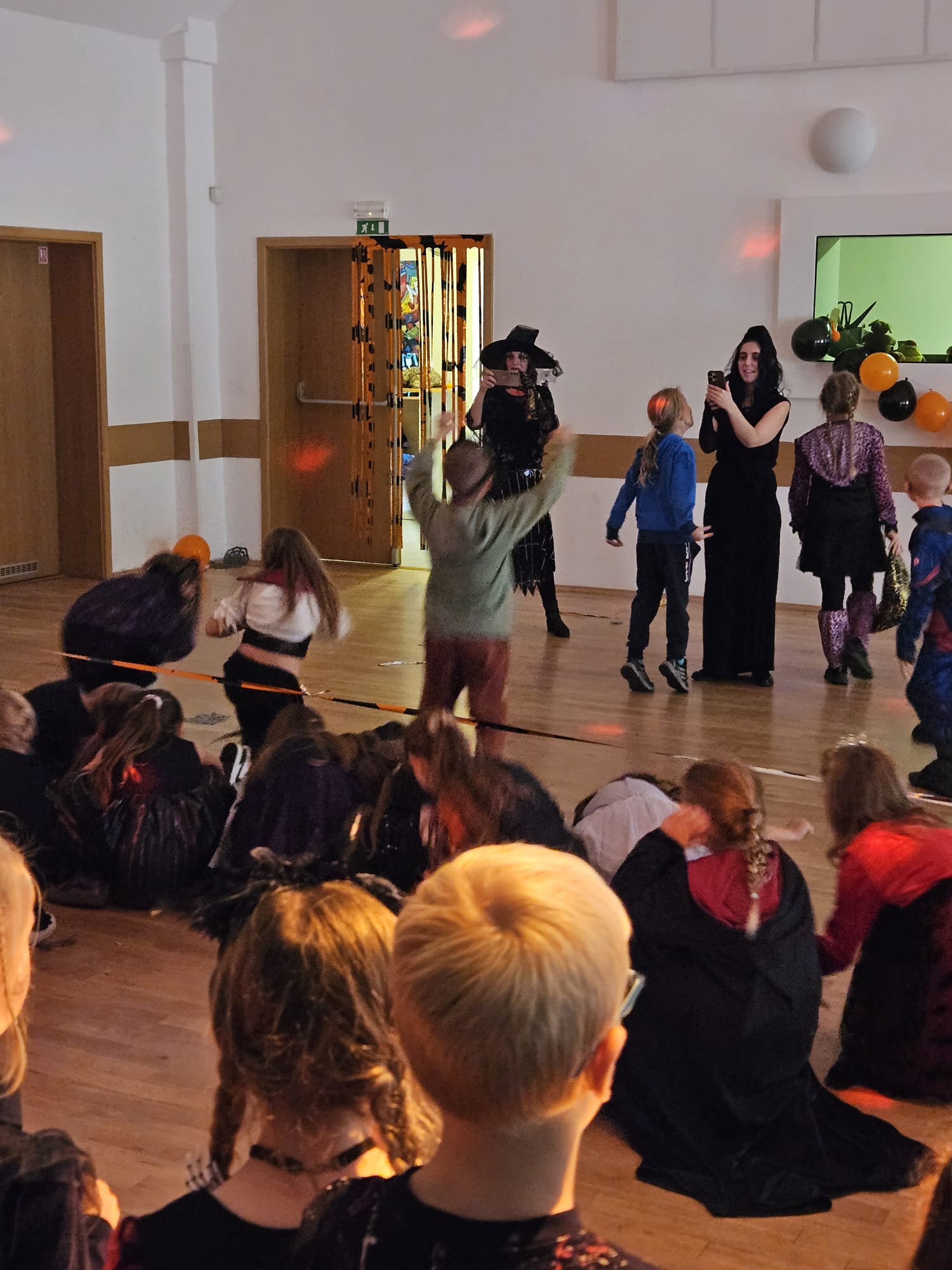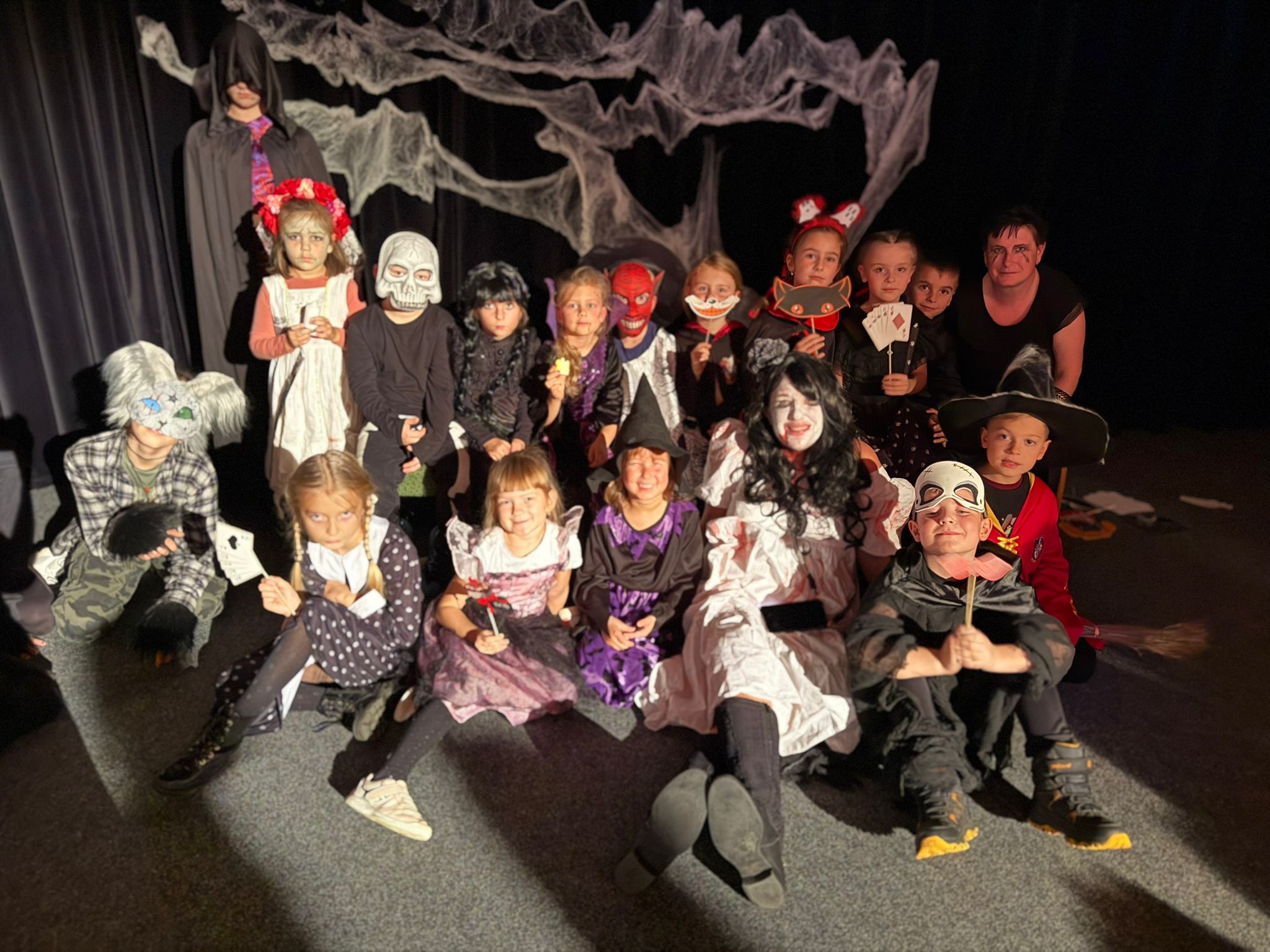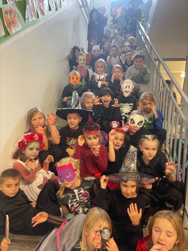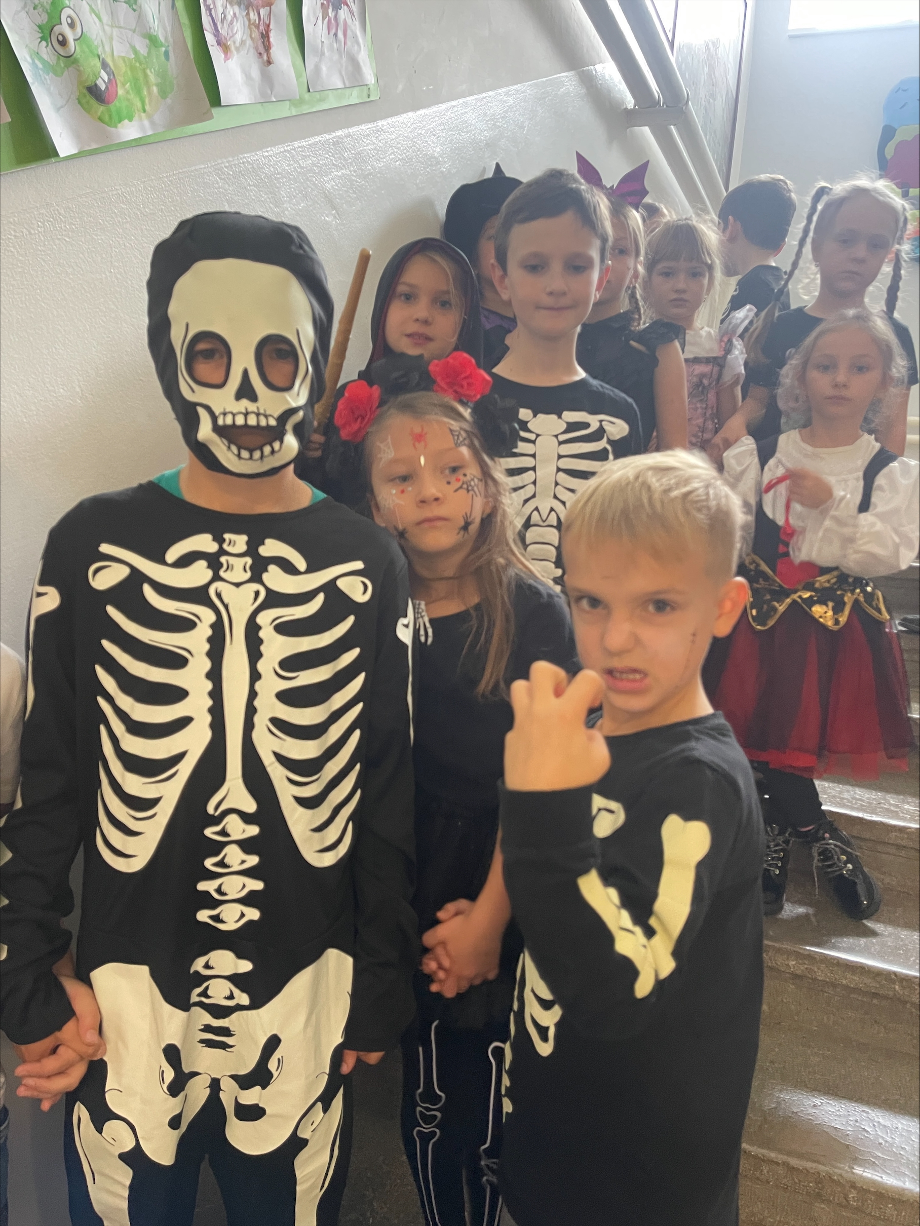 Naše škola se v pátek proměnila v království duchů, čarodějnic, kostlivců a roztomilých příšerek. Chodby ožily smíchem, strašidelným šepotem a třpytivými kostýmy, které děti s nadšením předváděly.