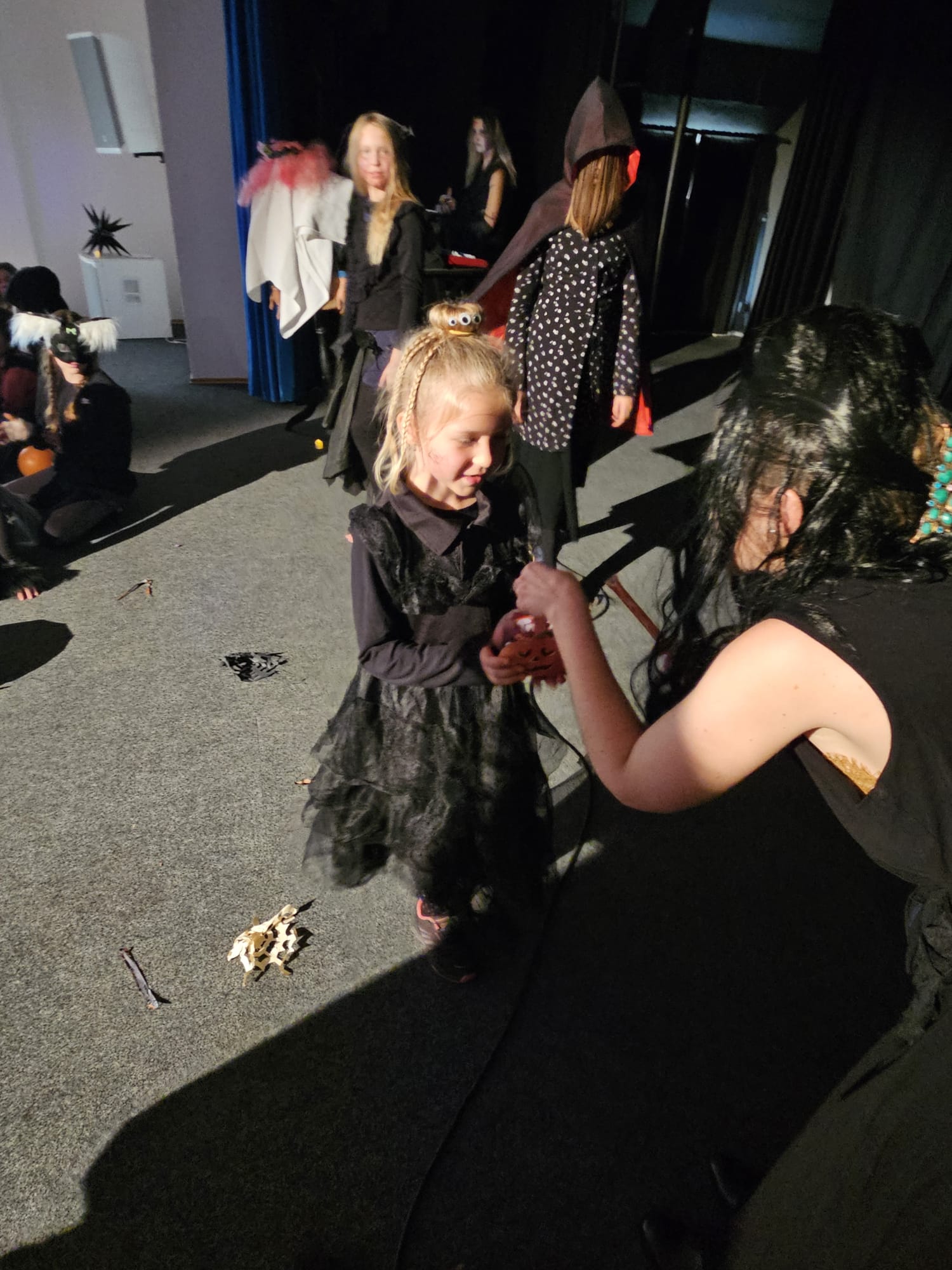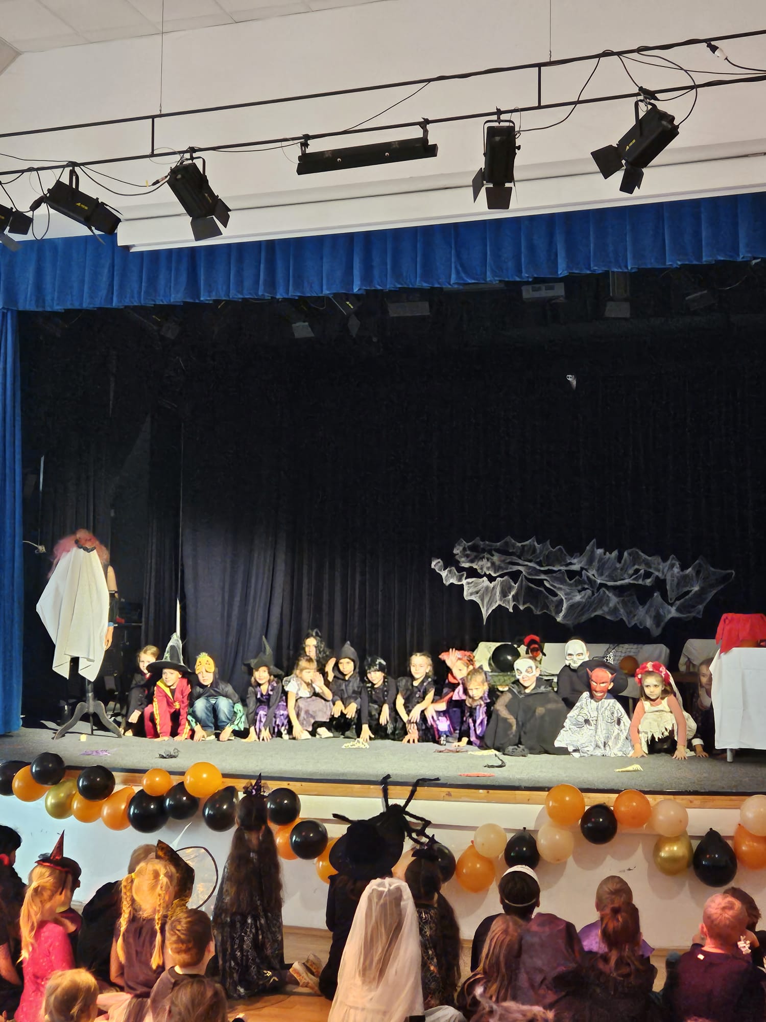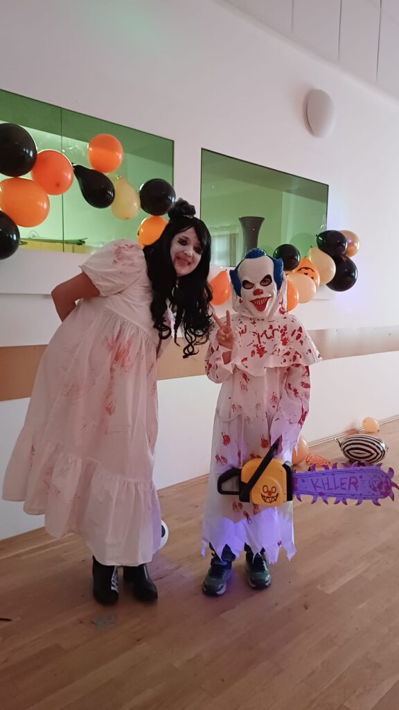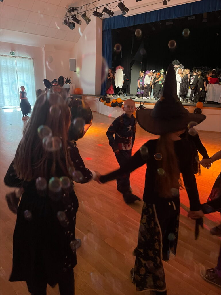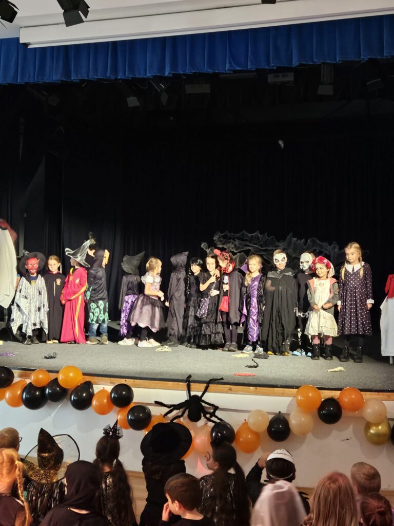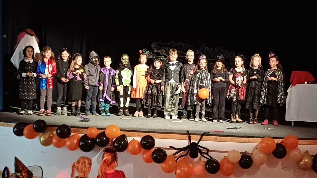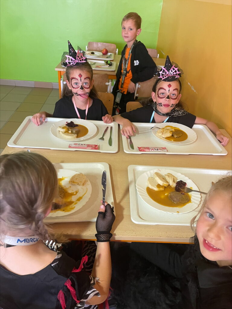 Naše škola se v pátek proměnila v království duchů, čarodějnic, kostlivců a roztomilých příšerek. Chodby ožily smíchem, strašidelným šepotem a třpytivými kostýmy, které děti s nadšením předváděly.