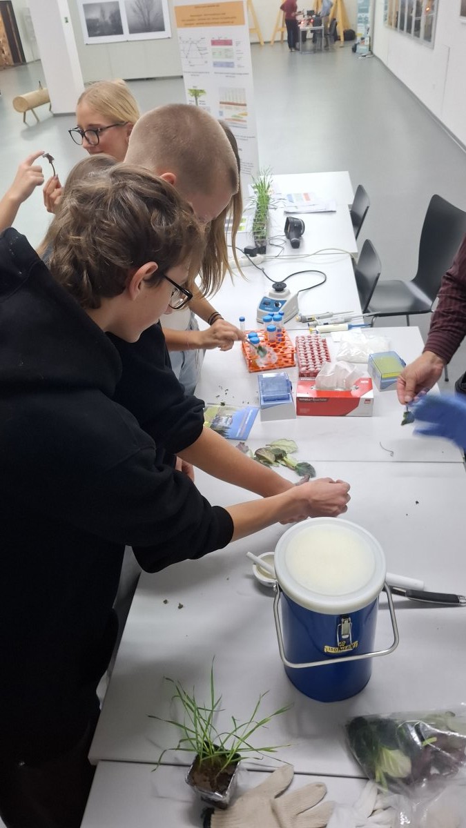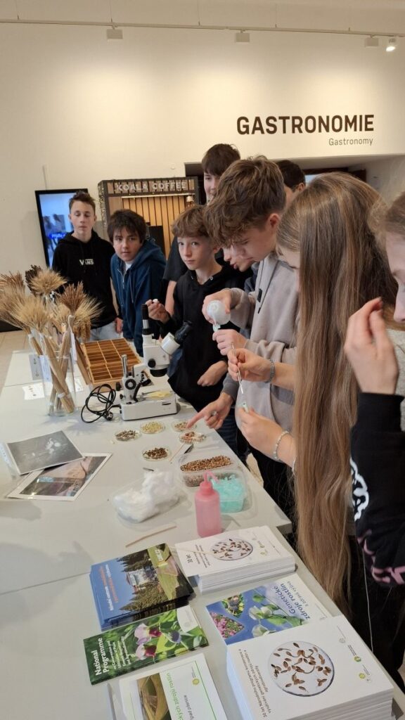 V pátek 26. září se naši žáci zúčastnili projektu Jitro výzkumníků: Biodiverzita (nejen) na poli v Národním zemědělském muzeu v Praze na Letné. Na interaktivních workshopech vedených odborníky z Národního centra zemědělského a potravinářského výzkumu (CARC) si vyzkoušeli extrakci rostlinné DNA, práci se suchým dusíkem, poznali škůdce obilovin a zasadili si plodiny z genové banky.