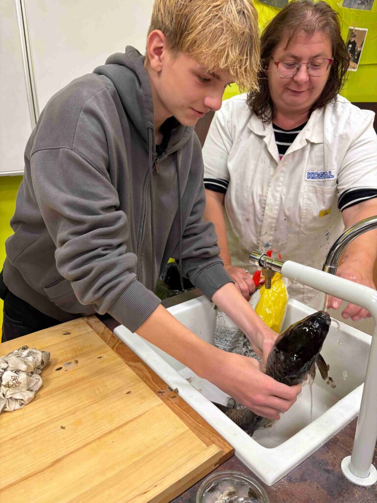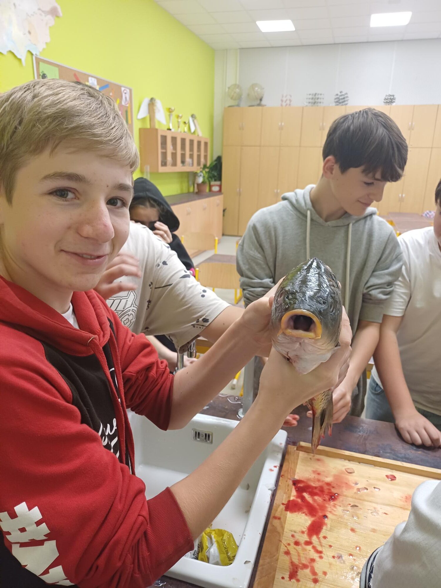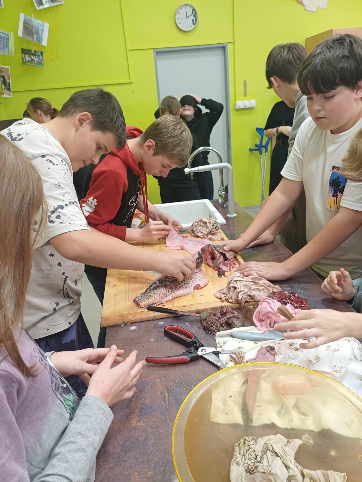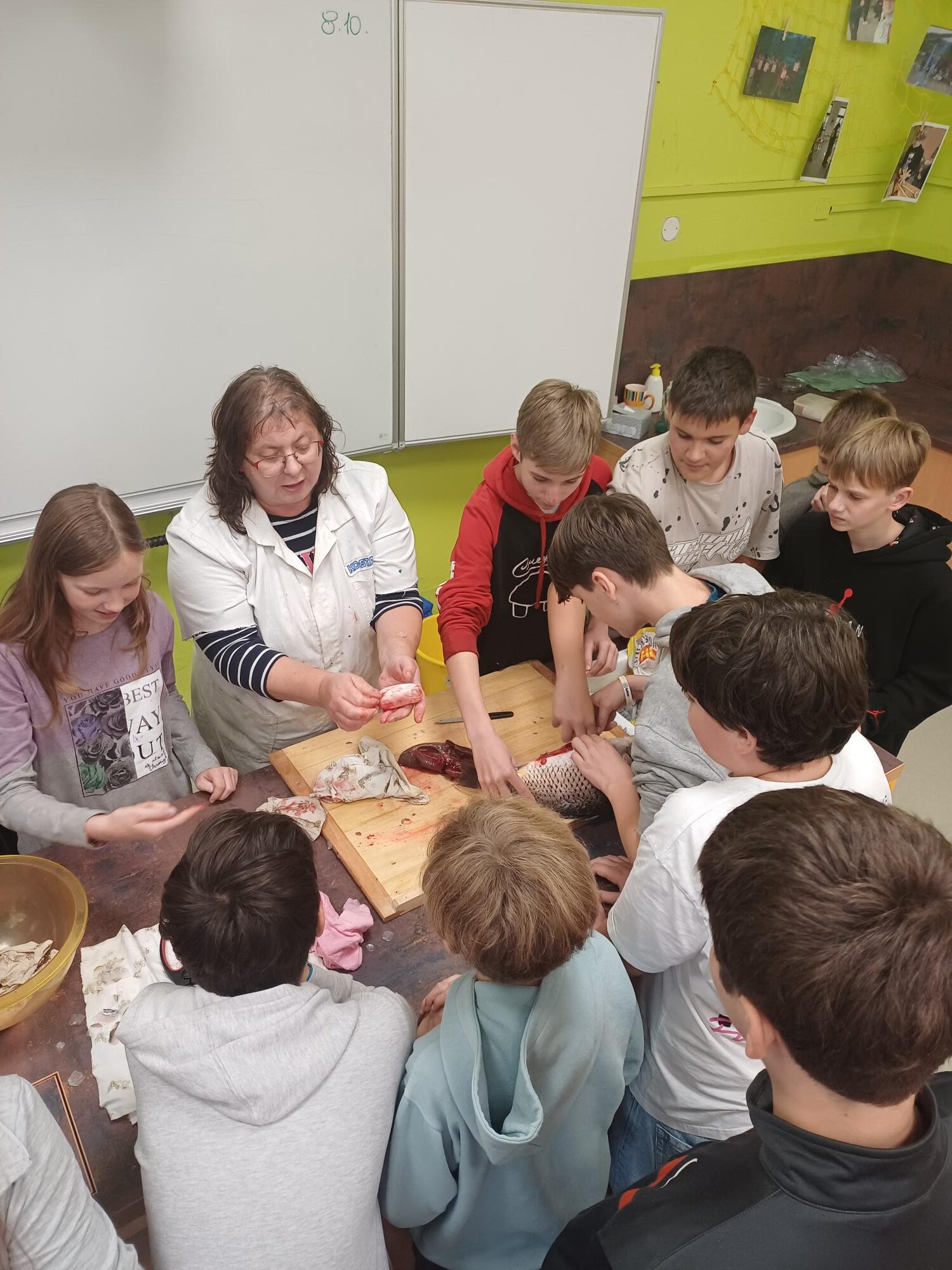 Sedmáci z Nučic si sáhli až na dno (rybí) anatomie! Hodiny přírodopisu v naší škole totiž rozhodně nejsou jen o sezení v lavicích! Tentokrát se žáci 7. ročníků proměnili v malé biology a zkoumali stavbu těla ryb na opravdovém kaprovi. Díky paní asistentce Aničce Hrubé, která nám přinesla do školy několik krásných exemplářů, jsme měli možnost si ryby prohlédnout opravdu zblízka – od šupiny až po srdce!