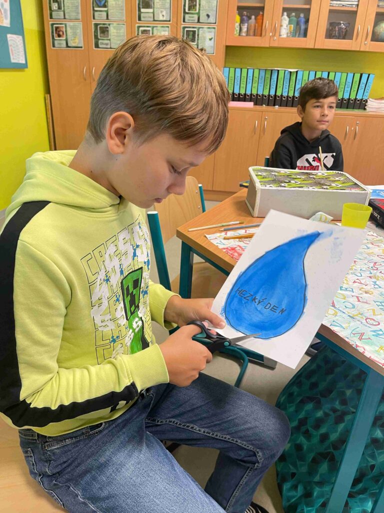 ni déšť nás nezastaví! V hodině pracovních činností se 6.B pustila do tvoření na téma pozitivních kapek deště. Každý žák dostal prostor, aby dešťovou kapku proměnil ve své vlastní originální dílo – malovali, psali vzkazy, stříhali a tvořili barevné kompozice.