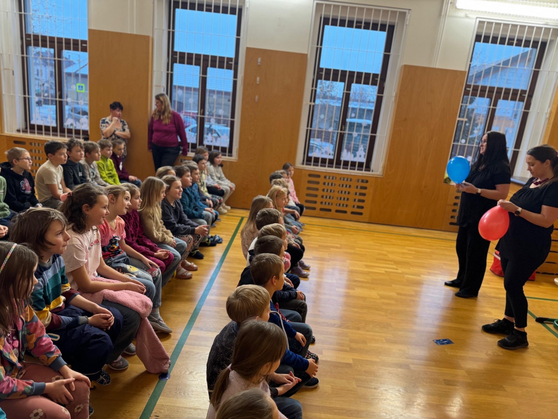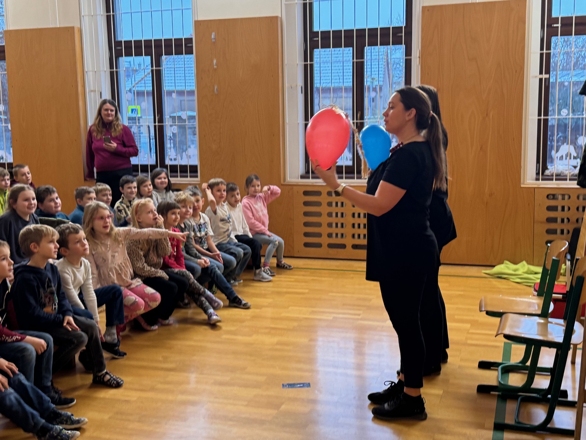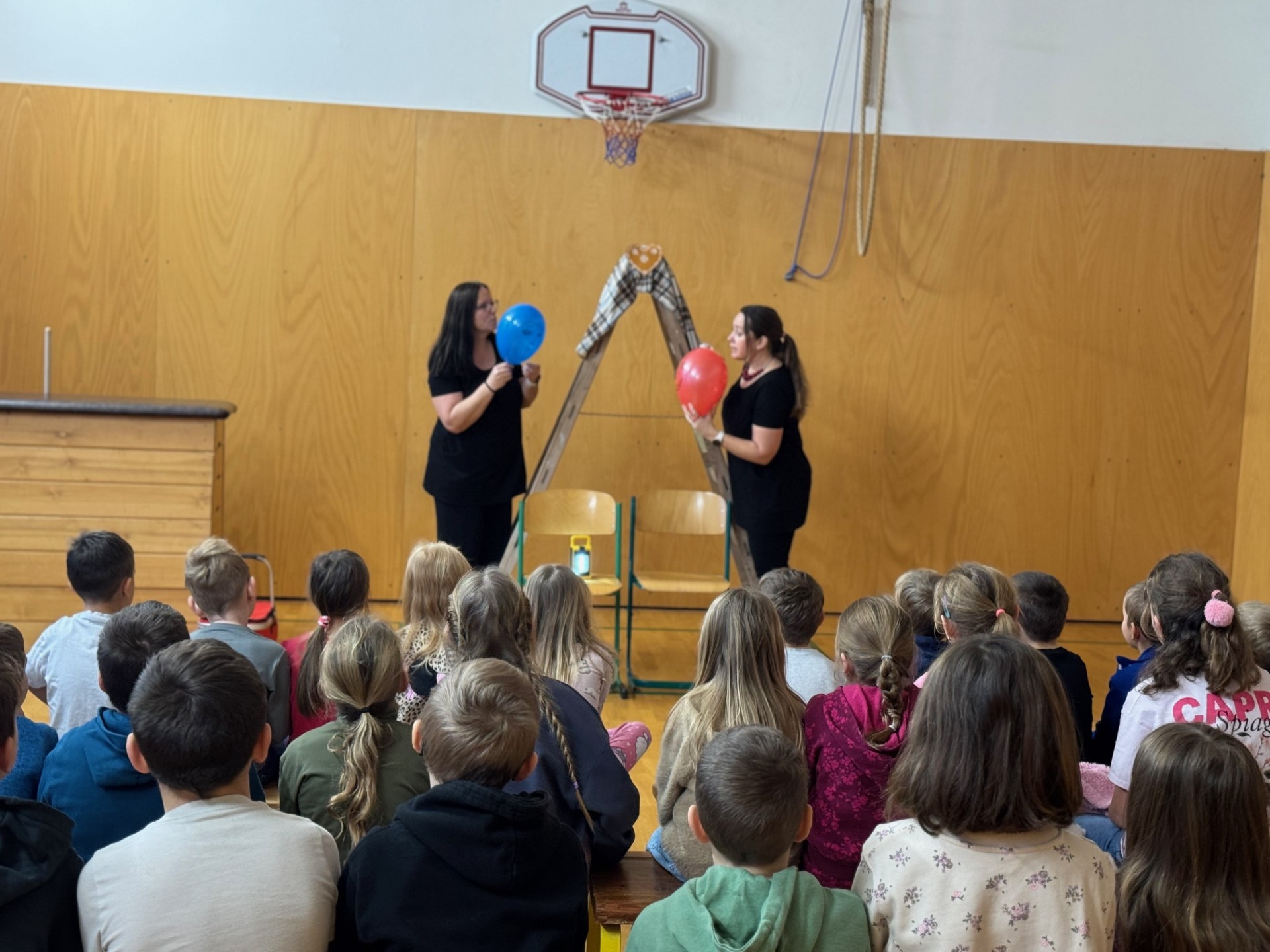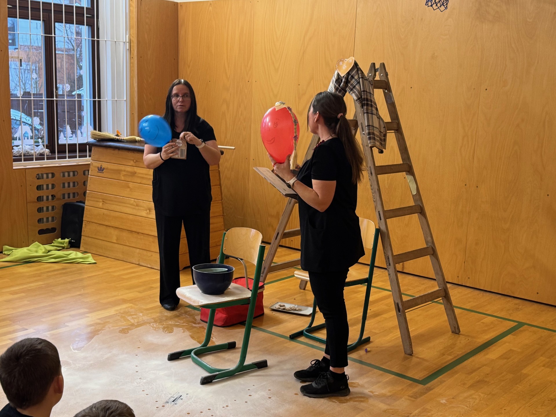 Za použití jednoduchých kulis v podobě štaflí, koštěte, deky a hlavně dvou nafukovacích balónků se uprostřed tělocvičny vytvořila dokonalá iluze vysoké jedle, zlé čarodějnice, perníkové chaloupky i dvou teenagerů, kteří se u babičky zrovna nudí. Nejde jim wifi, mají omezená data, a tak ze zoufalství vyrazí do lesa. Dojde na vyhlížení světýlka, loupež perníčků i zavření do chlívku. Ale protože jde o moderní a chytré děti, brzy jim dojde, že proti tloustnutí i peci zabírá cvičení a že starým lidem je lepší pomáhat, než je přivádět k zlosti neslušným chováním.