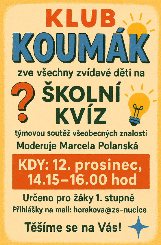 Klub Koumák opět přichází s programem, který nenechá žádného malého badatele v klidu. Tentokrát zve všechny zvídavé děti velký kvíz všeobecných znalostí