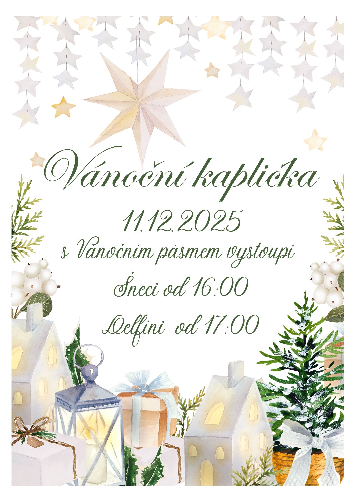 Leták nám už napověděl – čekají nás hvězdy, světélka, zimní dekorace a malá vesnička z papírových domečků… ale to nejdůležitější přinesou samotné děti: radost, nadšení a kousek skutečné vánoční magie.