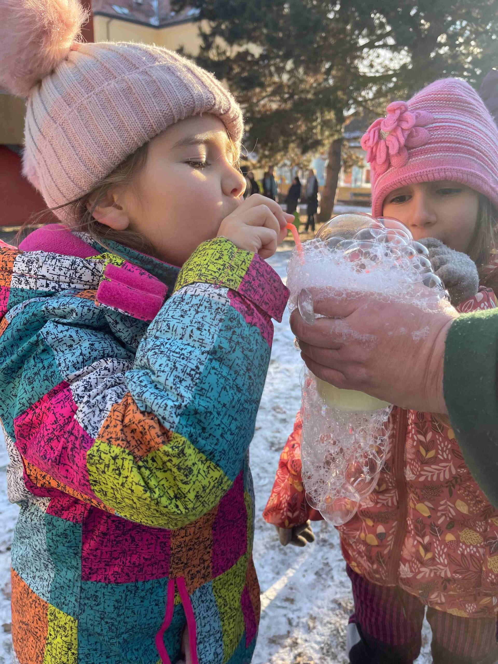 Děti s nadšením pozorovaly, jak se z obyčejné mýdlové bubliny stává ledový zázrak, a zároveň si nenápadně osvojovaly základní principy fyziky a chemie. Radost, úžas i spousta otázek byly jasným důkazem, že učení prožitkem funguje.