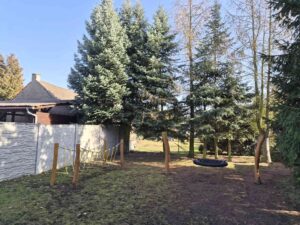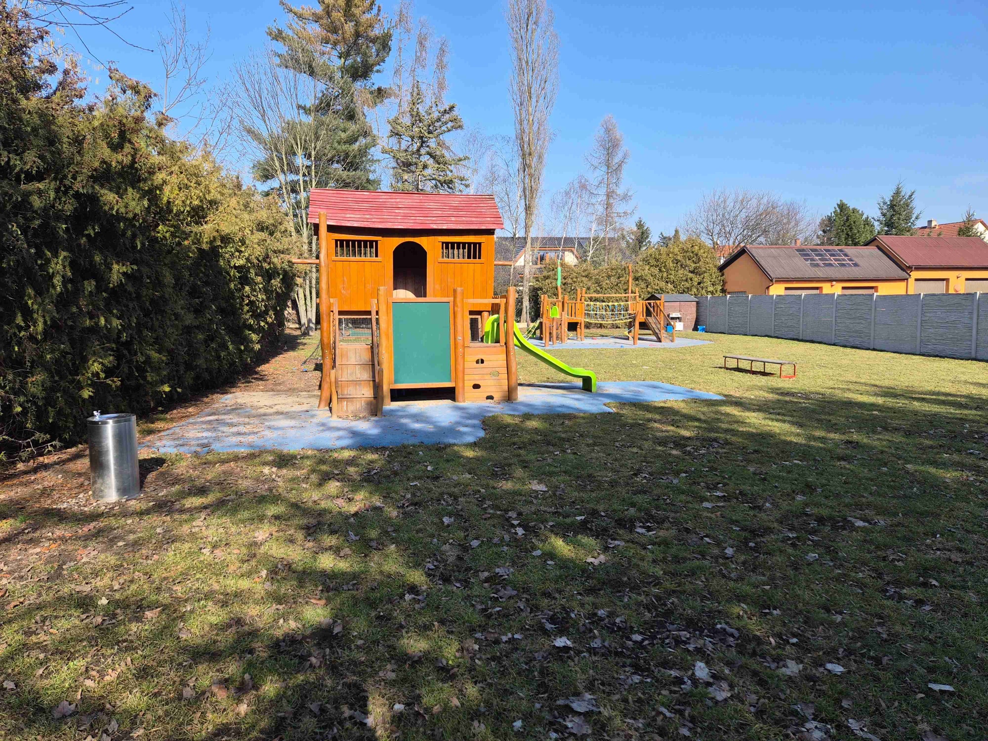 Na budovu MŠ bezprostředně navazuje zahrada, která umožňuje dětem rozmanité aktivity na herních prvcích nebo v zastíněném pískovišti. Na zahradě je také kopec, který děti využívají v zimě k bobování. U školky je dopravní hřiště.