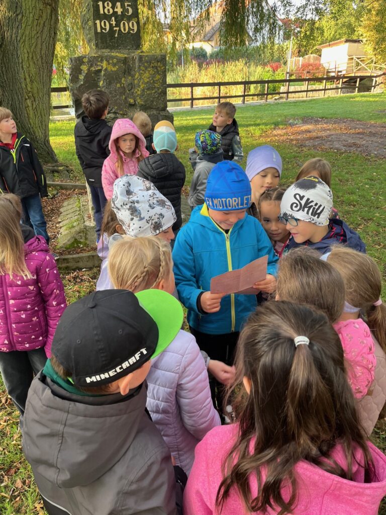 Hned v pondělí ráno 29. září se žáci 2.B vydali na výpravu po stopách horníka Františka. S mapou v ruce prošli celé Nučice, zastavili se v muzeu i knihovně, kde se dozvěděli spoustu zajímavostí o historii hornictví a životě lidí, kteří kdysi pracovali v dolech.
