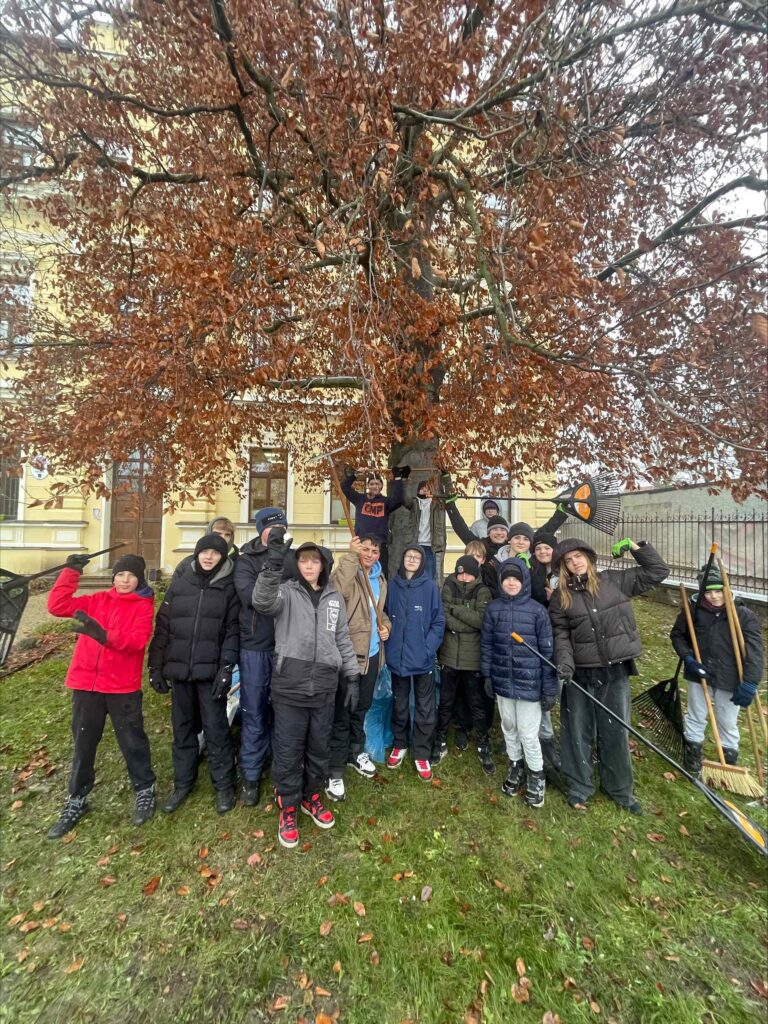 V rámci pracovních činností se naši sedmáci z Nučic pustili do závěrečného podzimního úklidu kolem školy – a vzali to opravdu poctivě. Listí lítalo, hrábě kmitaly a brigáda měla skvělou atmosféru. Společně vyčistili okolí budovy, zametli chodníky, uklidili trávy i zbytky spadaných větví a postarali se o to, aby škola i její okolí vypadaly upraveně a připraveně na příchod zimy.