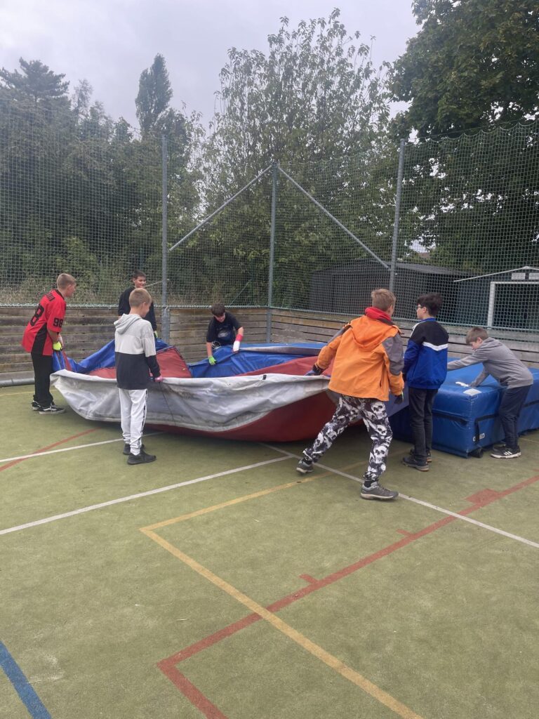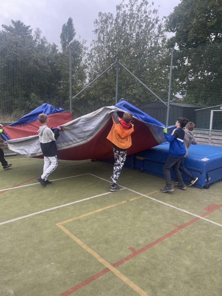 Pracovní činnosti v 7. třídě běží na plné obrátky – a to i venku na našem multifunkčním hřišti. Ani chladnější počasí nás nezastavilo.  Žáci se pustili do pořádné práce s žíněnkami a doskočišti, která společnými silami přenášeli a skládali.