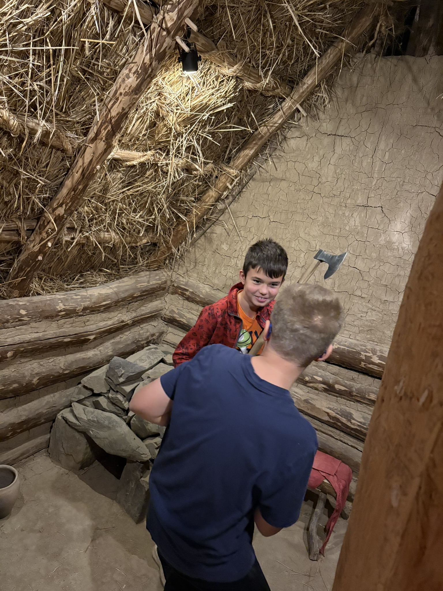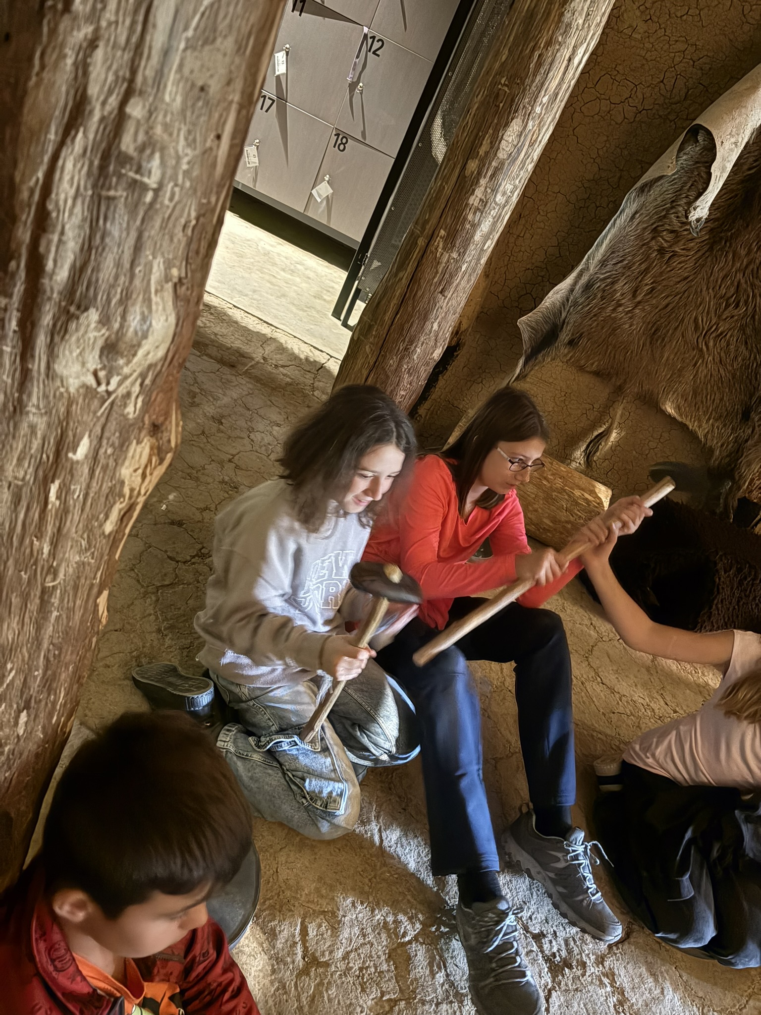 V Archevitě jsme se ocitli tváří v tvář minulosti – prošli jsme pravěk od neolitu až po dobu římskou. Děti si mohly osahat kamenné nástroje, podívat se do rekonstrukcí obydlí, zkusit si drtit obilí, sekat kamennou sekerou nebo hádat, k čemu sloužily různé pravěké předměty.