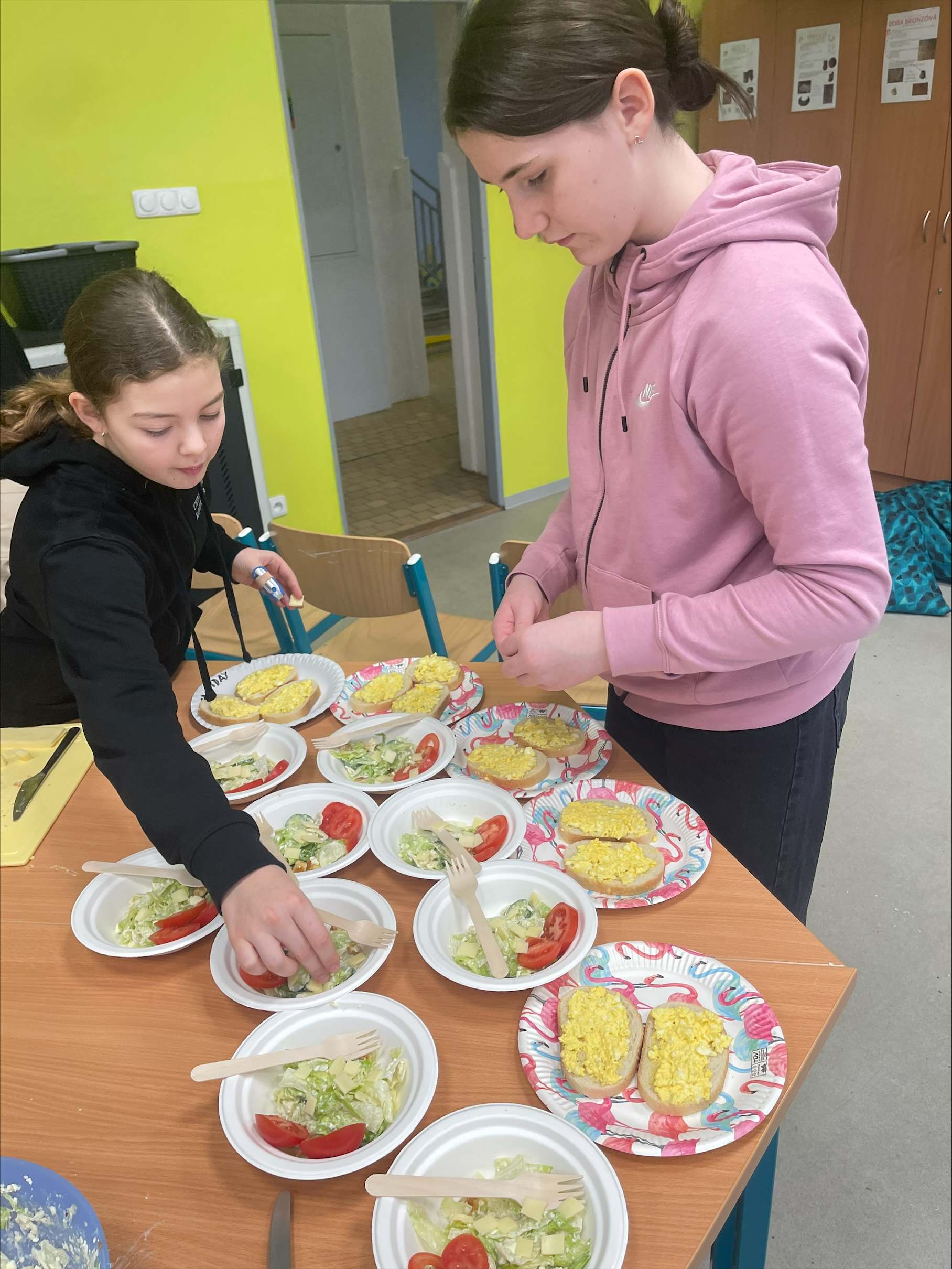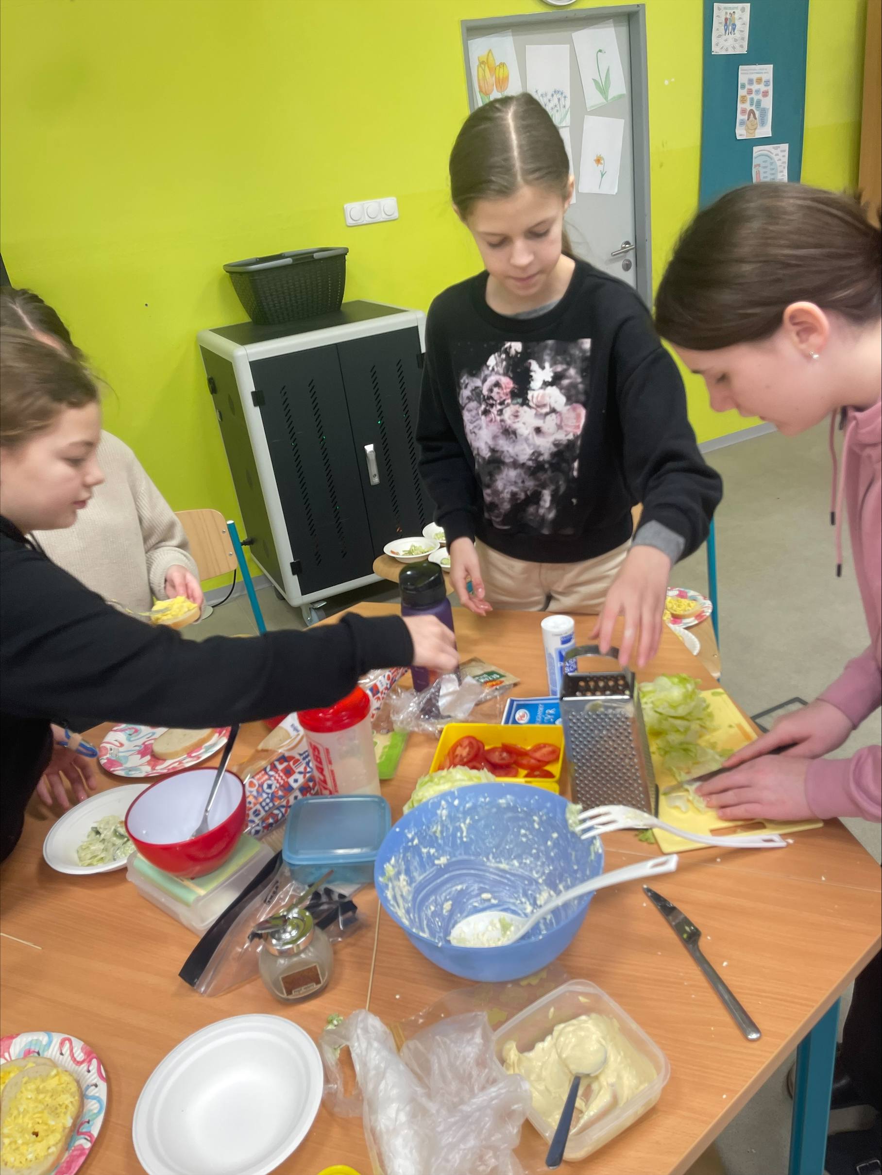 Děti pracovaly ve skupinách, krájely, míchaly a ochutnávaly. Učily se základům zdravého stravování, hygieny při práci i spolupráci v týmu. Každý měl svou roli a na výsledku to bylo znát – talíře se rychle plnily barevnými a chutnými dobrotami.