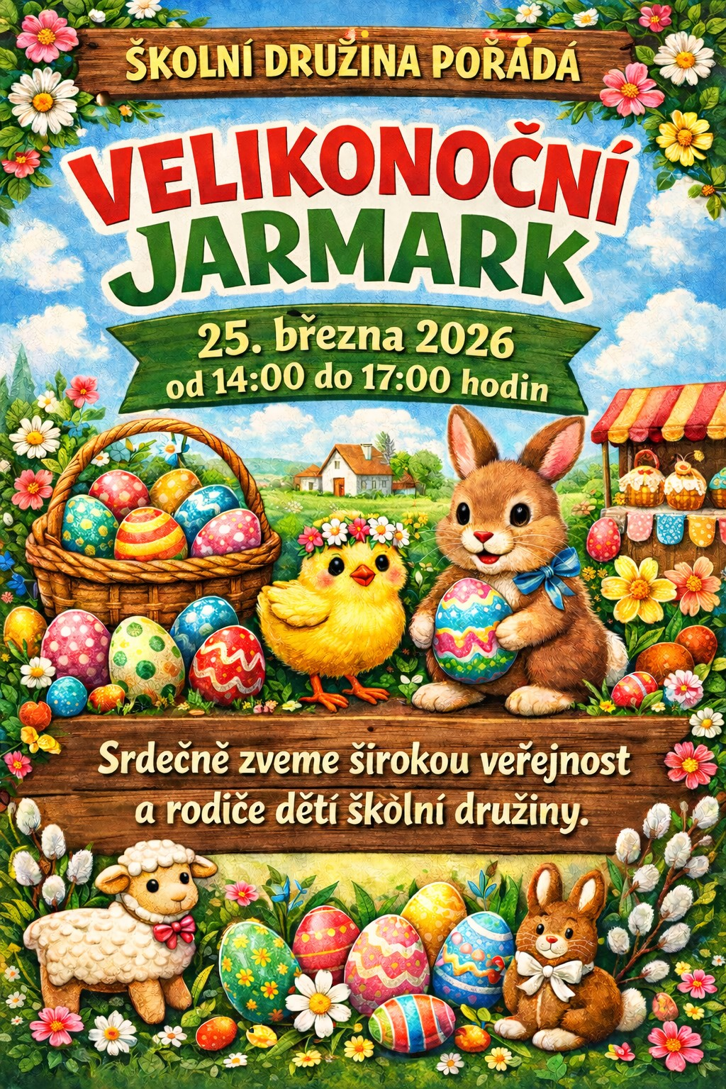 Všechny srdečně zveme na Velikonoční jarmark pořádaný školní družinou. Těšíme se na Vás ve středu 25. března od 14 do 17 hodin.