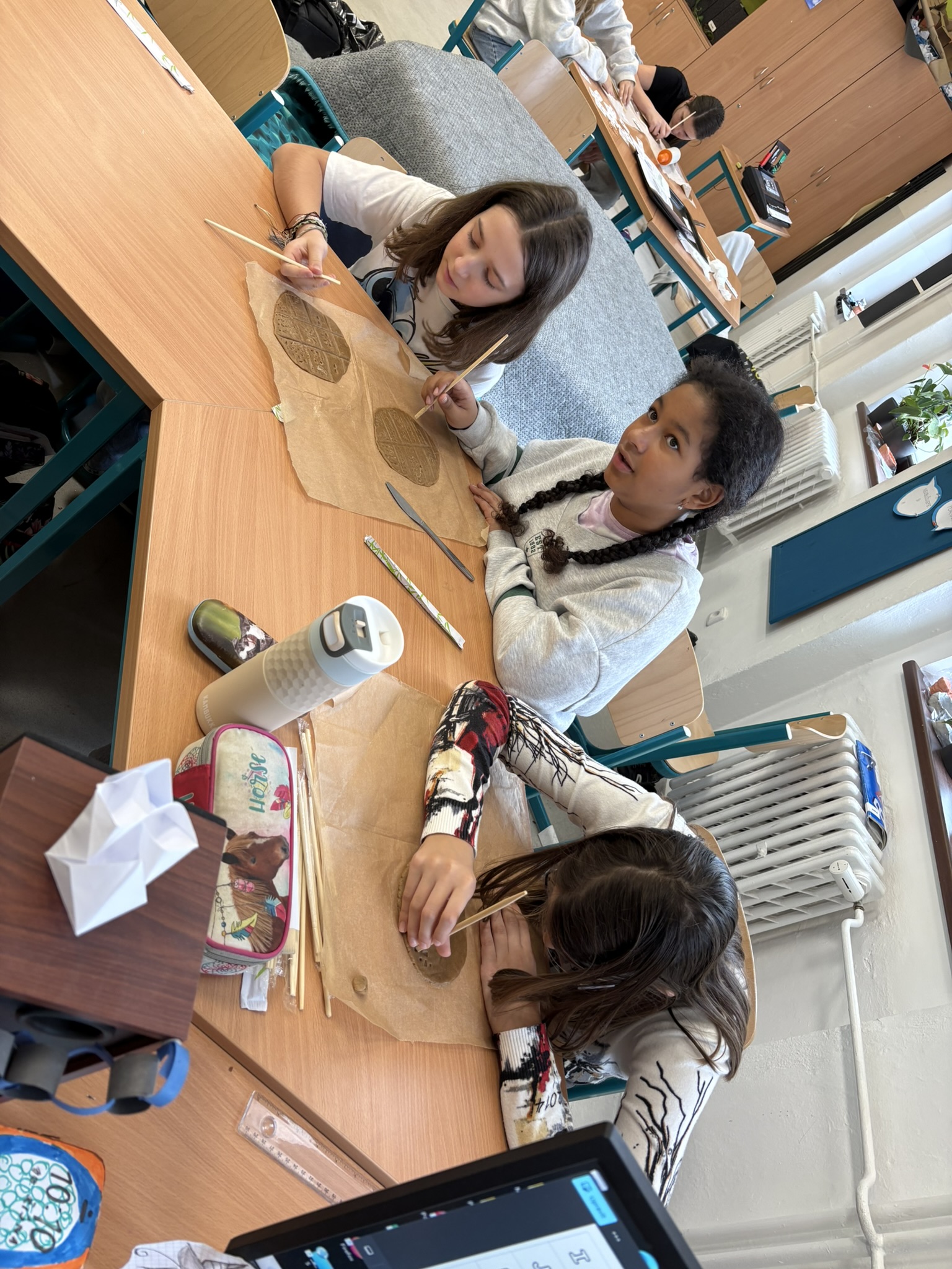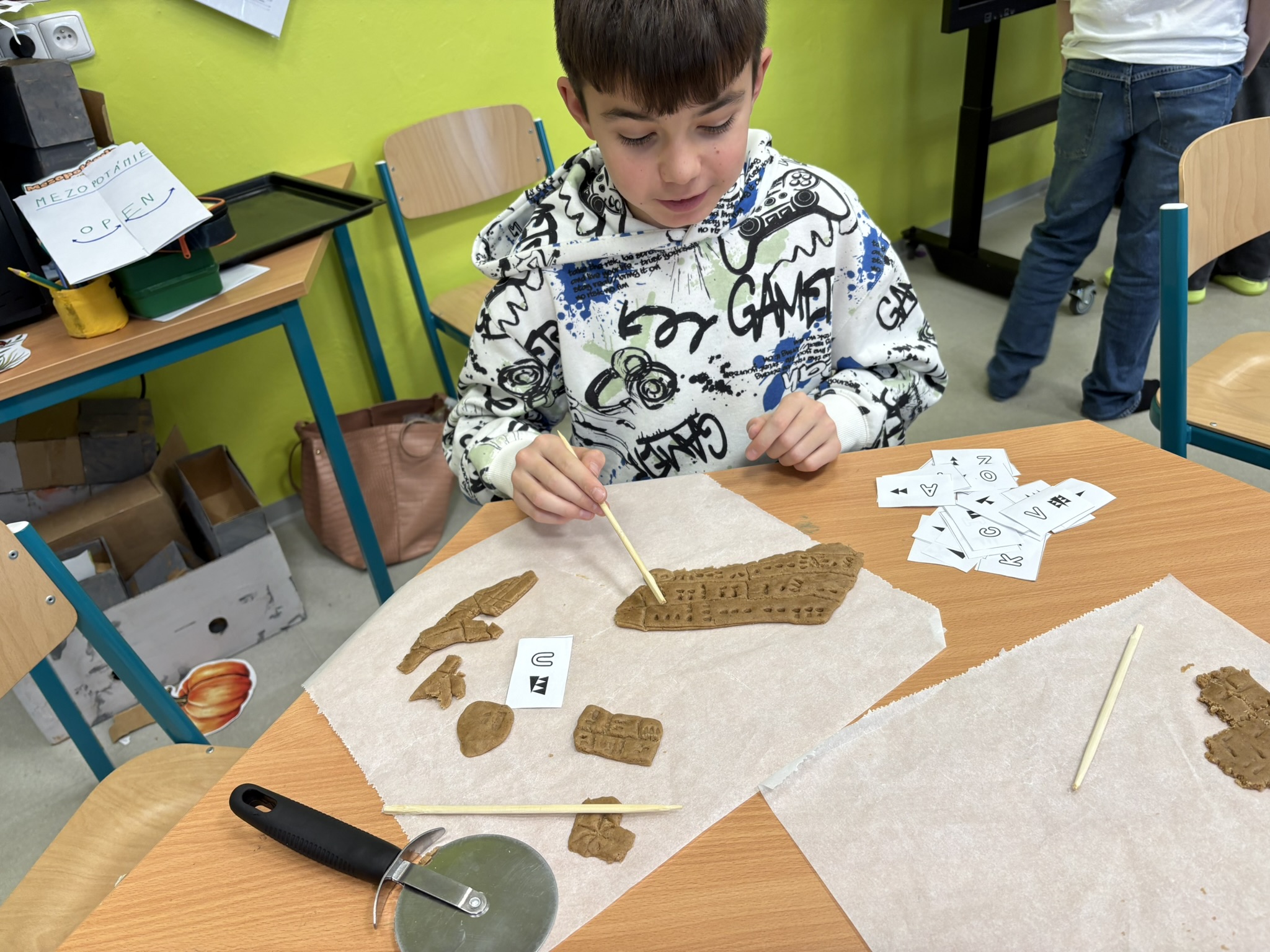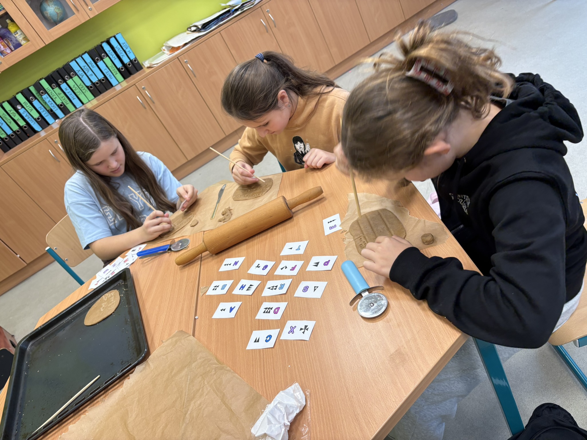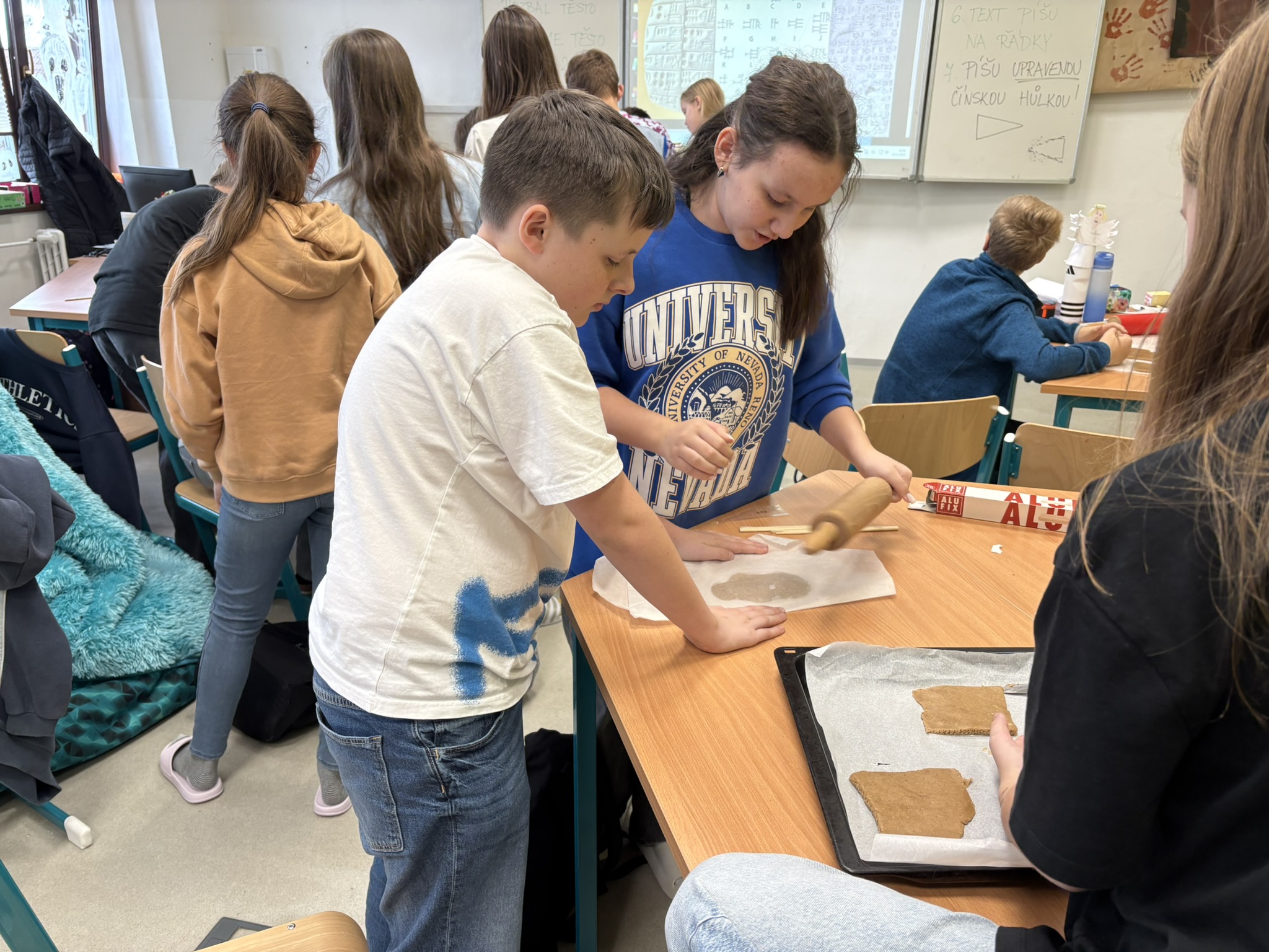 Naši pouť starověkem jsme začali mezi Eufratem a Tigridem. A protože je čas cukroví, dali jsme se i my zlákat pečením. Na zvonečky, hvězdičky a stromečky nás moc neužije, takže jsme to vzali za jiný konec a pekli jsme s paní učitelkou destičky s klínovým písmem.
