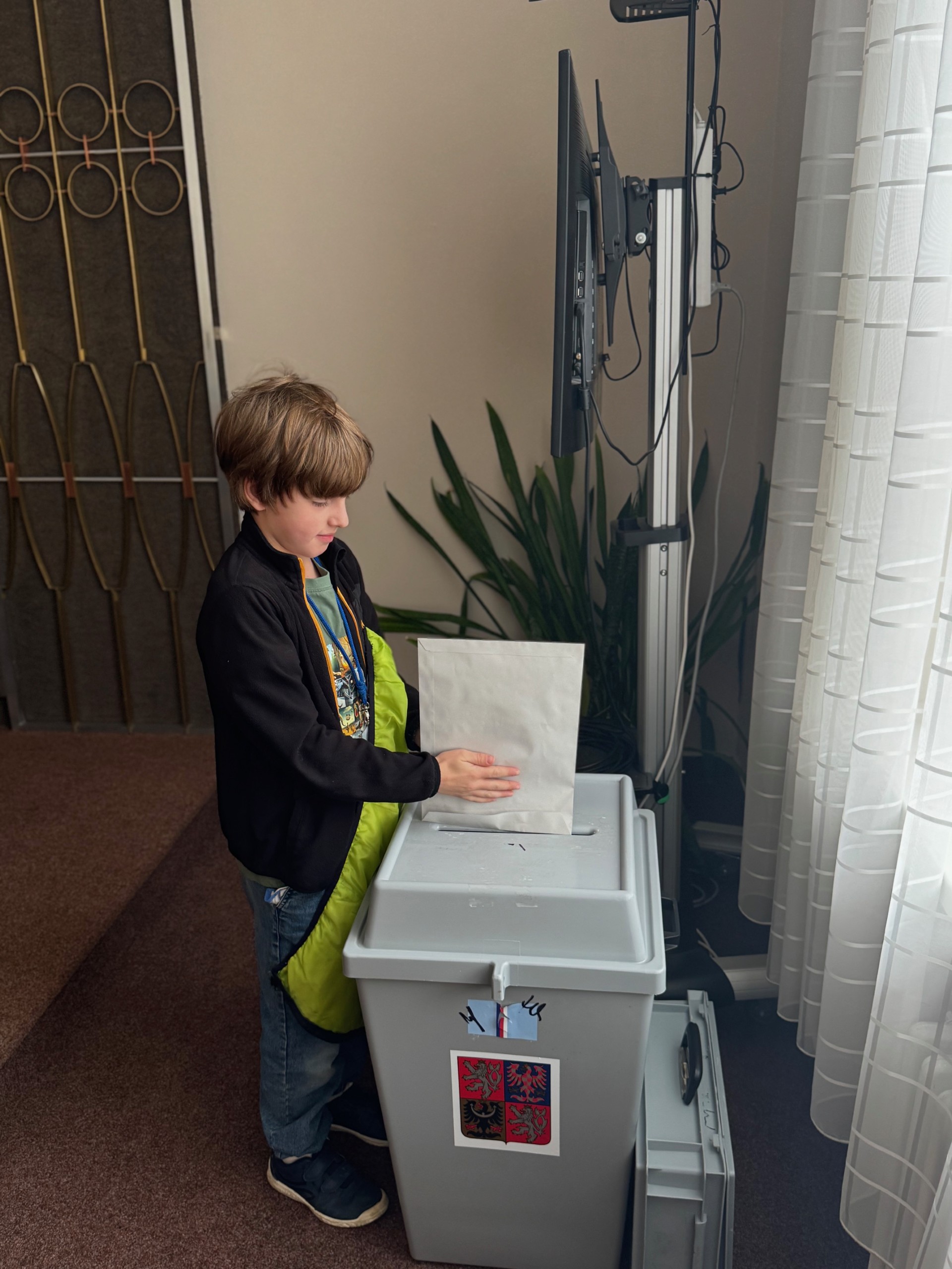 Jen pár dní po celostátních volbách si naši třeťáci zkusili, jaké to je volit — a to přímo na obecním úřadě v Nučicích! Pozvání od pana starosty přijali s nadšením a čekalo je nejen poznávání úřadu, ale i vlastní hlasování.