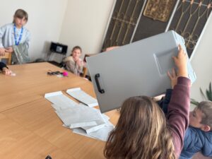 Školáci si zvolili vlastní volební komisi, která kontrolovala průkazy totožnosti (ISIC karty), vydávala volební lístky a úřední obálky. Všichni hlasovali spořádaně a své lístky vhodili do skutečné volební urny. Komise pak hlasy pečlivě sečetla. A co se vlastně volilo? Nejoblíbenější školní předmět!