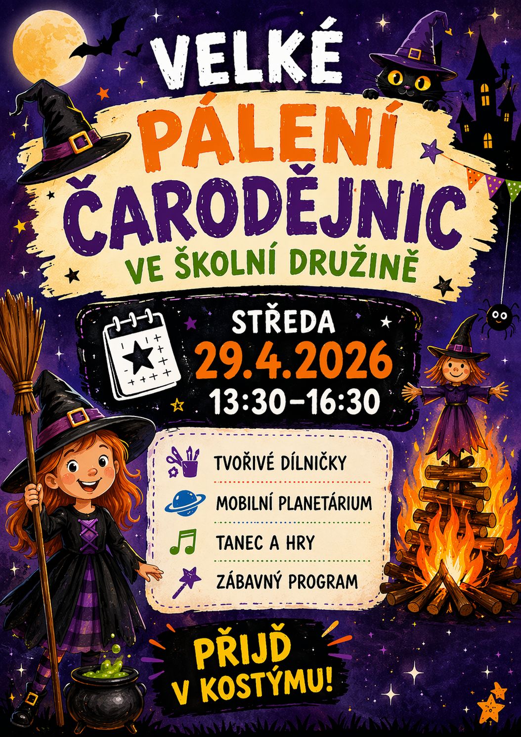 Srdečně zveme všechny malé čarodějnice a čaroděje na tradiční pálení čarodějnic ve školní družině!