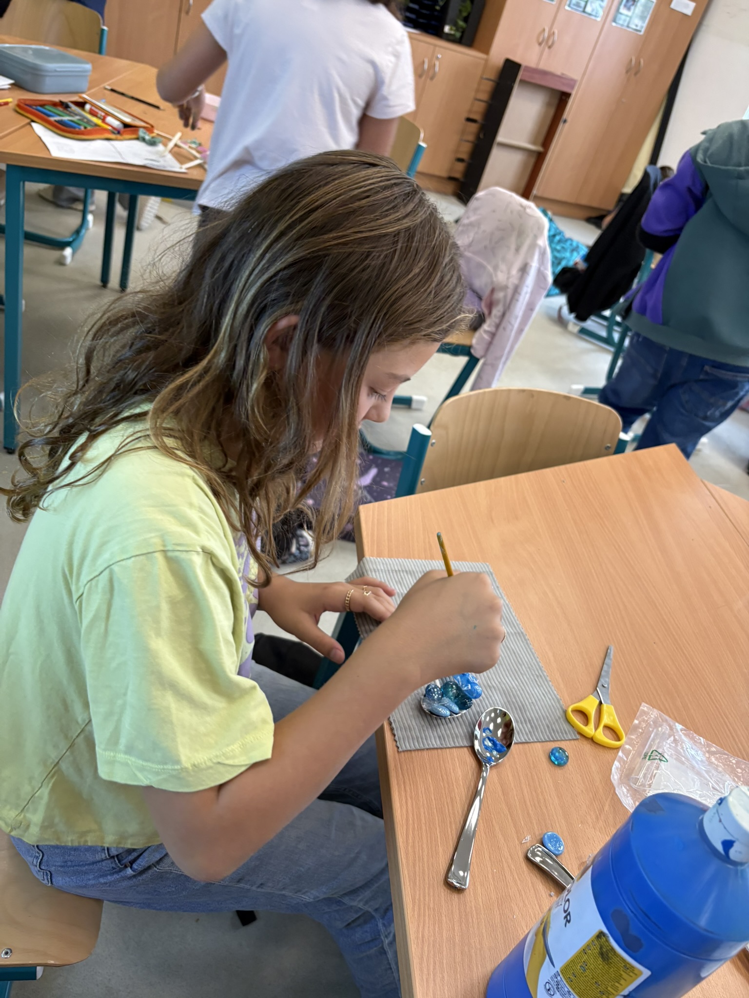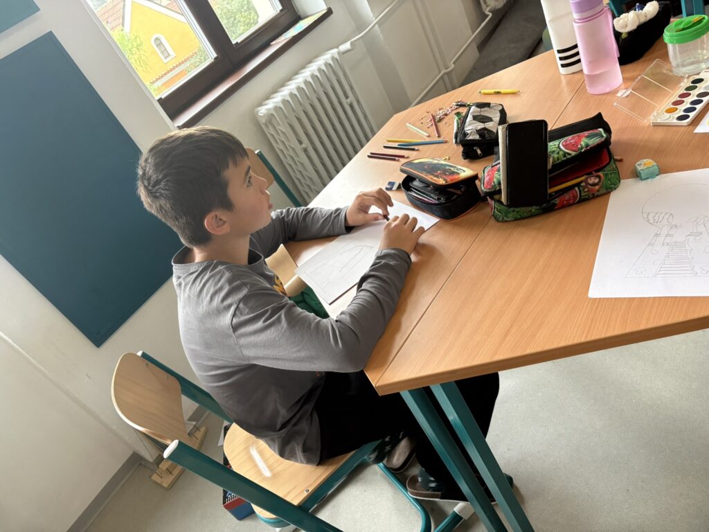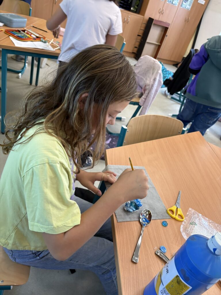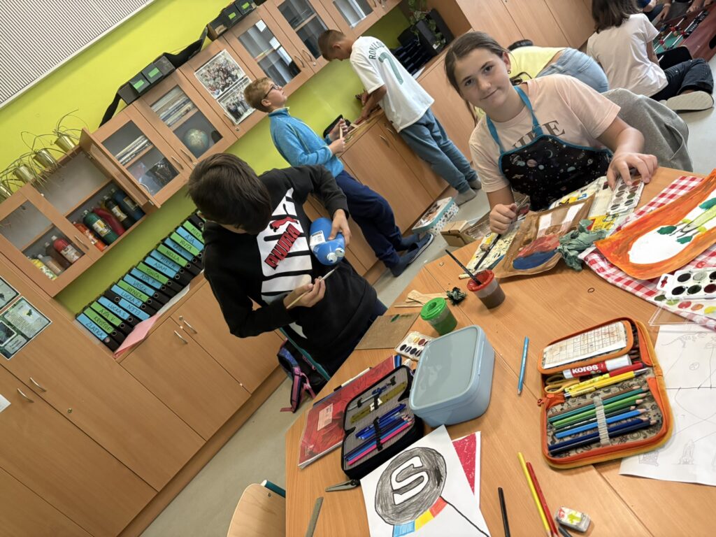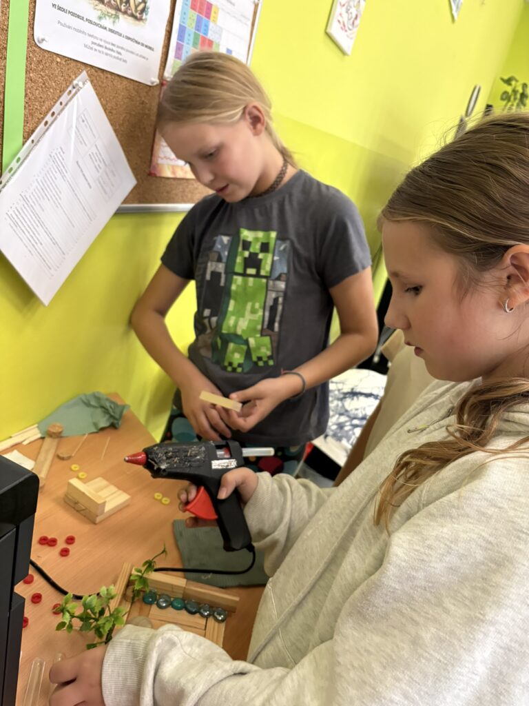 Mimo zadané výtvarné práce různými technikami si šesťáci jednou za čas užívají Dílny volného tvoření. Máme pro ně ve třídě vyhrazenou krabici plnou pokladů, které mohou zpracovat do svých vynálezů, zlepšováků či okrasných předmětů. Tuhle práci si všichni velice užívají, tvoří a úplně jsme tak odbourali chvíle, kdy byla pro část dětí výtvarka nuda a nutné zlo. Každý může pracovat svým tempem a na čemkoli ho bude bavit. Jediná podmínka je, že musí pracovat. Ráda se přiznávám, že i mě jako učitele tahle část výtvarky opravdu moc baví. Chodím mezi dětmi, občas něco podržím či podám, ale jinak se jenom kochám jejich skvělými nápady a kreativitou.